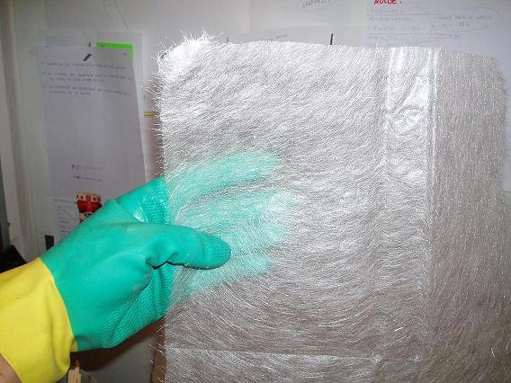 En mi trabajo, lo que hacemos para aumentar la aderencia de la fibra al angulo que estamos trabajando, es hacer un poco de emplaste (resina espesada con aerosil) catalizarlo,mezclandolo muy bien con una espatula, y aplicarlo con una brocha a todo lo largo del angulo,dejando más o menos cierta cantidad, de esa forma a las fibras les cuesta más despegarse de una mezcla muy pastosa.No sé si me esplico.