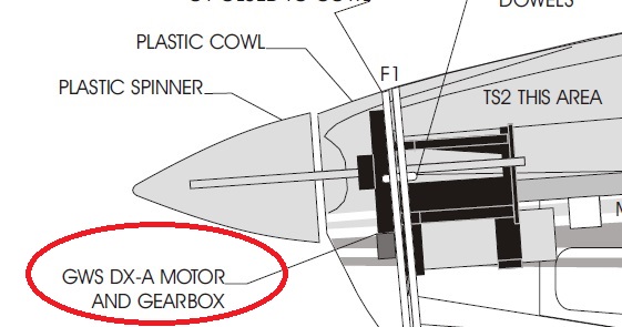 Aquí consigues info del motor y reductora http://www.windyurtnowski.com/DaveDay/gws.htm , el IPS es el simil al GWS DX-A, otra cosa es que usen brushless que es una gran mejoría pero el del plano es el indicado anteriormente.