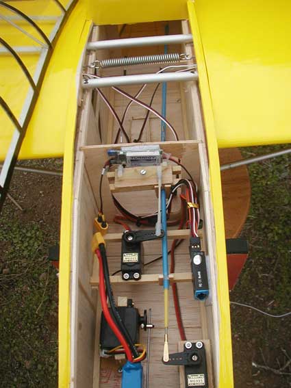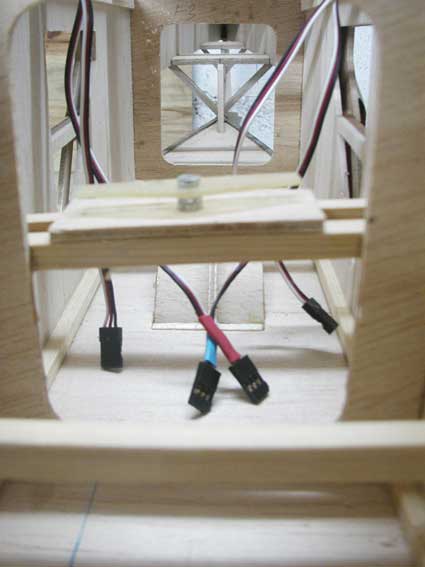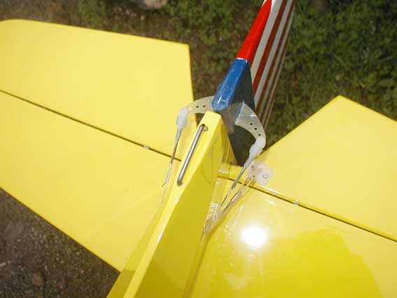 El sistema estuve mirando varios métodos, ya que el que viene en el plano es accionado desde el fuselaje por medio de un hilo, pero esto lleva más tiempo para los enganches cuando se montan las alas y todo esto, así que mejor en el ala y menos problemas. Esta es la manera más fácil y rápida y efectiva que encontré, espero que funcione bien.
