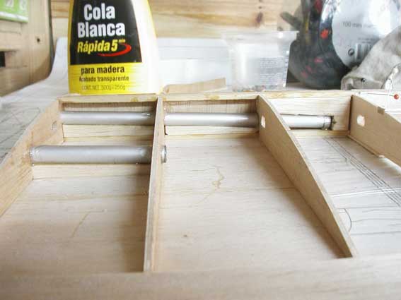 Este tubo es para la fijación de las alas, según el plano aqui dentro van unos elásticos ó un muelle, pero creo que también cambiaré esto y ya me inventaré algo.