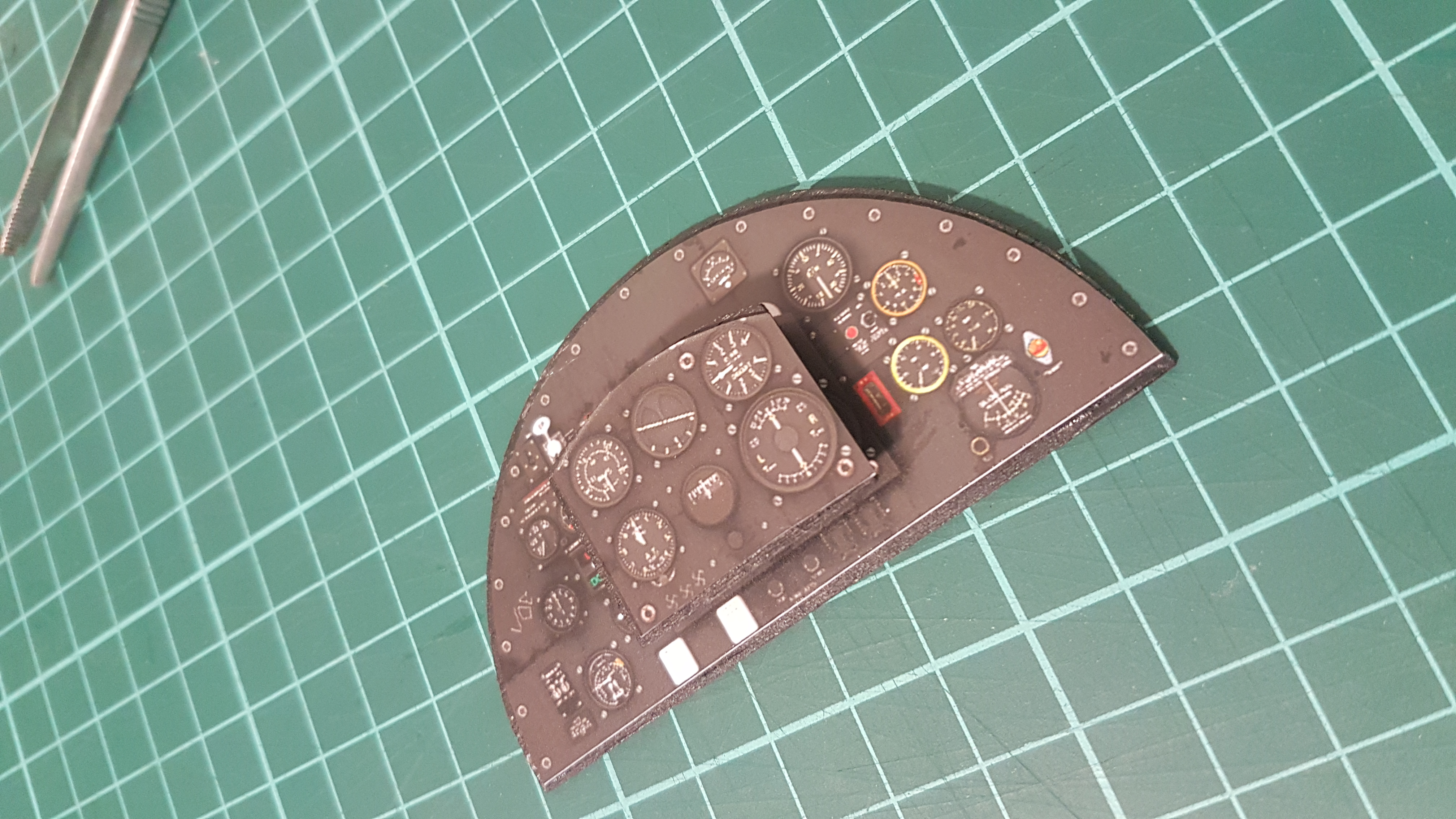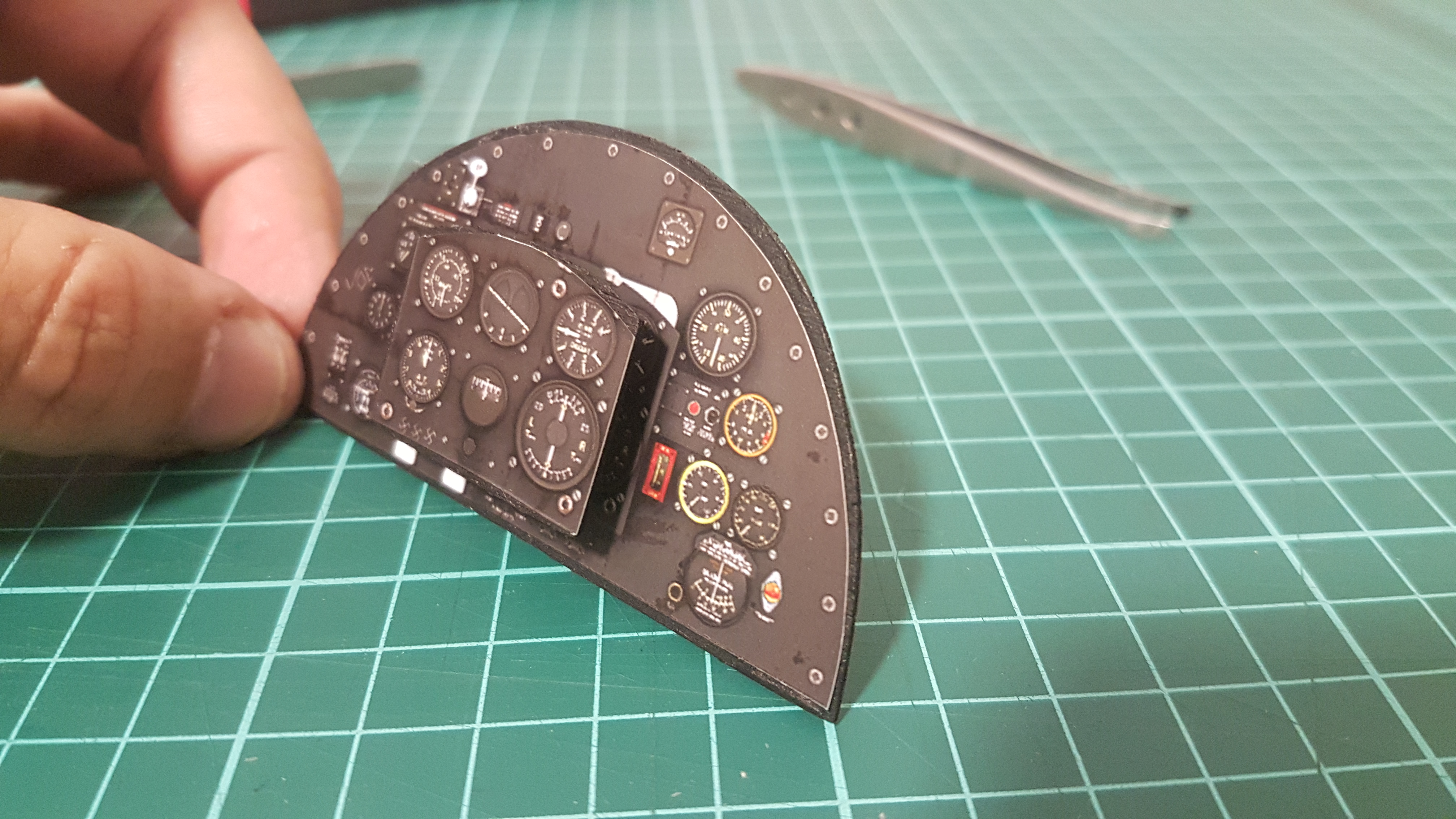 Hola a todos, ya estoy en la etapa final de la construcción y ya hace algún tiempo que estoy de lleno a los detalles de escala, decoración y demás partes y piezas, para el panel de instrumentos use un trozo de balsa de 1 mm y sobre la misma pegué una parte del tablero y a modo de "layers o capas" por encima de éste otra parte del panel quedando como en sobre relieve, el avión real era así, pues eso, luego recorte pequeñas piezas de acetato, de los que vienen en los blíster cuando te compras una herramienta pequeña o algo por el estilo para simular el efecto del vidrio de los relojes del panel, el resultado superó ampliamente mis expectativas ya que el acabado final me ha dejado más que satisfecho, espero que les guste y pronto estaré subiendo más detalles de éste hermoso modelo, salud!!!!