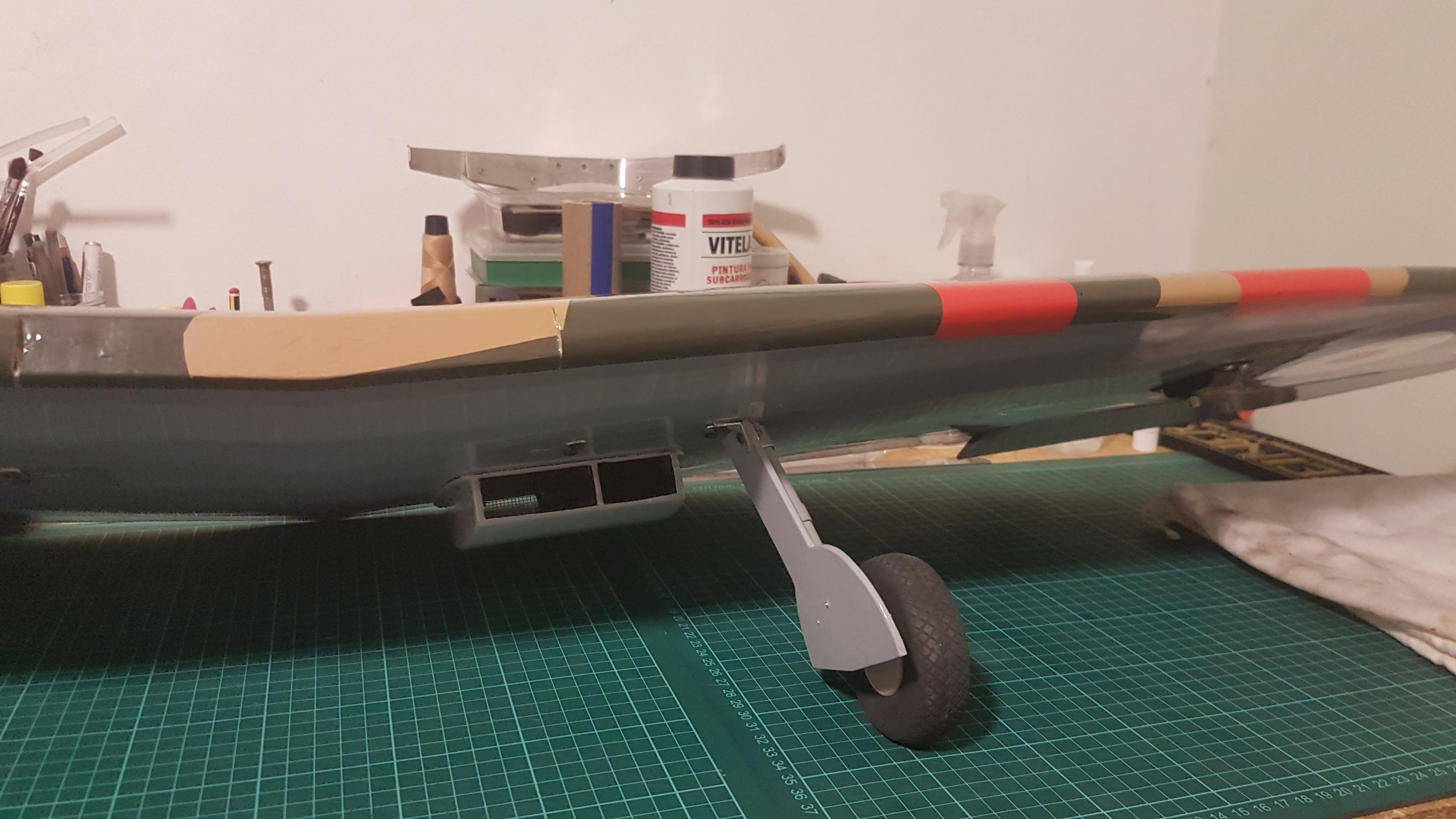 Hola amigos, en alguna parte de éste post comenté que debido al elevado precio del tren retráctil y por la topografía de mi campo de vuelo decidí no poner tren rebatible, me aconsejaron que no era una buena idea ya que el constante "golpeteo" en el despegue y aterrizaje podrían dañar el sistema mecánico y electrónico del tren de aterrizaje, también pensé en hacerlo neumático pero finalmente lo hice fijo, claro está que no tiene comparación ni perdón de Dios ver un warbird haciendo una pasada a baja altura a toda velocidad con el tren exhibido pero las condiciones obligaban, de todas maneras estoy más que satisfecho con el acabado y he intentado simular lo más que pude la escala del tren, sin más palabras les comparto las fotos, próximamente vendrán más del fuselaje finalizado, el mismo tiene mucho más nivel de detalle que el ala, me refiero a escapes de motor, cowl, cabina, piloto, panel de instrumentos, antena y decoración mas compleja entre otras cosas, en fin... espero que les guste mi Supermarine Spitfire tanto como a mí, realmente me ha hecho muy feliz la construcción de éste fabuloso modelo, siempre destacando la incondicional predisposición de mi amigo Marcelo Carranza y Lucas Carranza del taller Aerodelta, su taller fue el lugar den dónde se me cumplió el sueño de construir el modelo, saludos cordiales a todos desde Argentina!