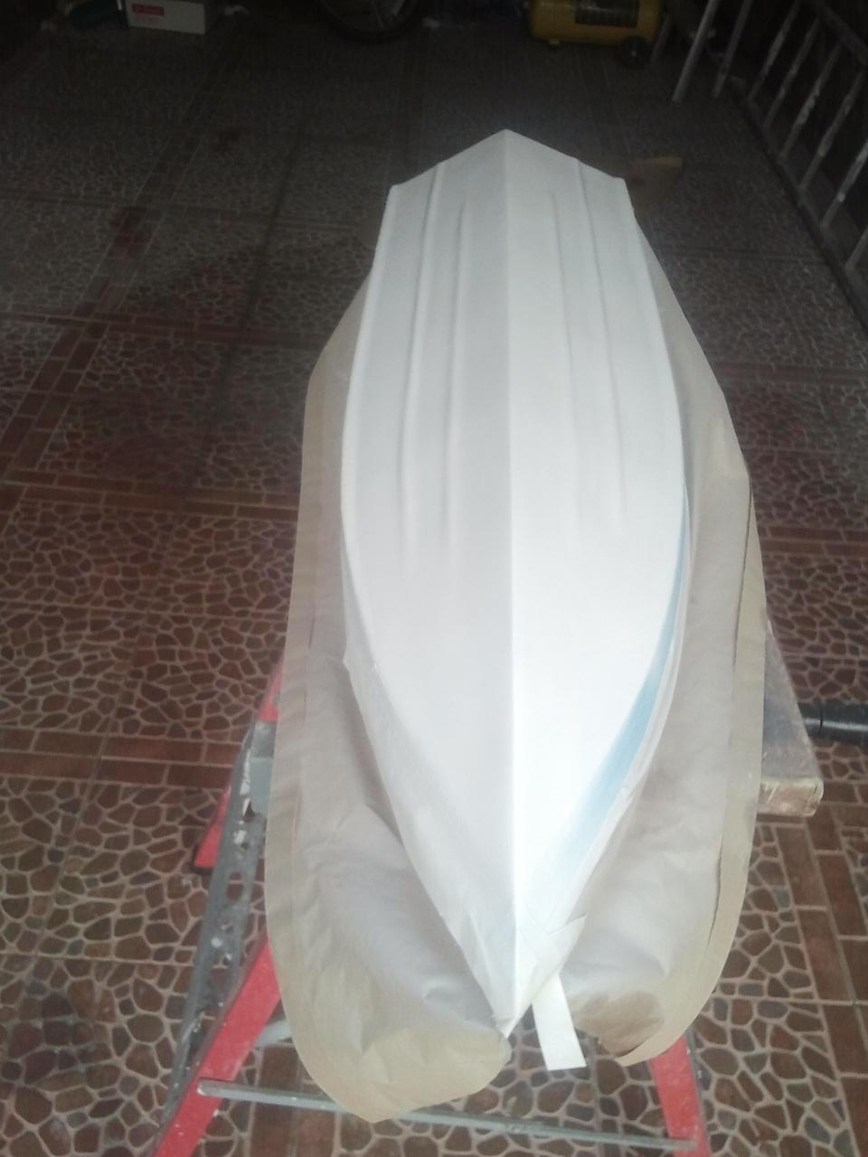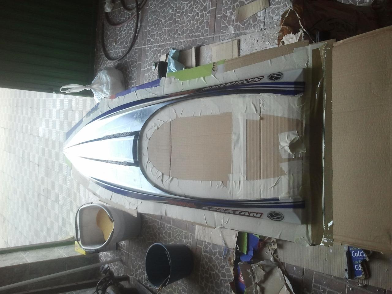 hola a todos compañeros abro este post de mi nuevo proyecto por que me gustaria compartirlo con todos vosotros en fin os cuento un compi tiene una traxxas spartan es super rapida y de un tamaño considerable para mi es perfecta ecepto en una cosa que el casco es de ABS y no me gusta para mi gusto se la pedi prestada y como claro como no era mia tube que hacer el molde en escayola muy a mi pesar ya que me hubiera gustado haber lo hecho de fibra por miedo a dañar la lancha original el molde de escayola (-) no sale perfecto con lo cual una vez sacada la lancha de fibra (+) me pegue una semanita lijando,dando masilla,lijando,masilla,gel goat,lijando etc etc etc ............