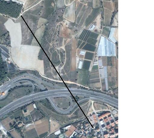 Javier, a todos les tengo "tomada la medida" y en las pruebas de alcance que hago con la antena desplegada me llegan a 1 Km, con un bloque de edificios a 10 mts del tx en la línea de enlace con el Rx, al lado derecho del Tx pero que no llega a cortar la visión (ver foto). El Tx en mi casa y el Rx en el camino al lado del bosque. En ese lugar con la antena del Rx en vertical recibe bien, pero con la antena horizontal o en línea con la dirección de propagación falla, por lo que considero que es el alcance límite. Más lejos se me pone la tierra por el medio y en esas condiciones no es válido tomar medidas.