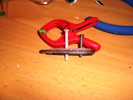 A la chapita del estabilizador le he añadido un tornillo más detrás del que viene. Al estabilizador le he hecho el agujero correspondiente.