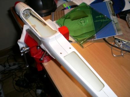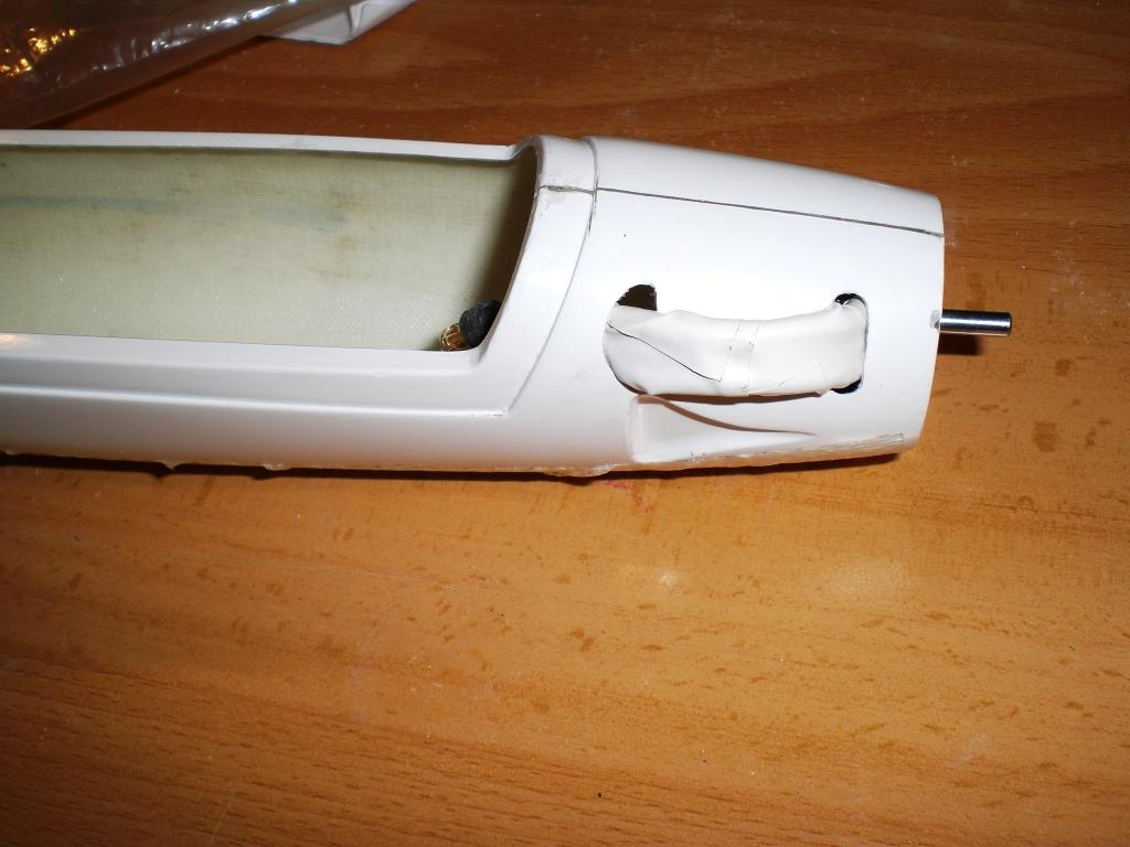Hola ya que agujereado el fuse :( y puesto el outrunner. He intenté evitar ese paso pero no he podido, los cables corrian riesgo de tocar la carcasa rotatoria. Os pongo algunas fotos para que lo veais. He pegado con Pattex porque el ciano no me gustaba y quería sellar bien los agujeros (el epoxy se colaba por el agujero).
