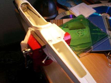 En el primer Pterox que tuve, le puse otros dos tornillos en el borde de salida. Pero como las alas son tan finitas por esa parte, al menor golpe se rompen. Ahora las llevo con una simple tira de cinta adhesiva al fuselaje. Es suficiente.