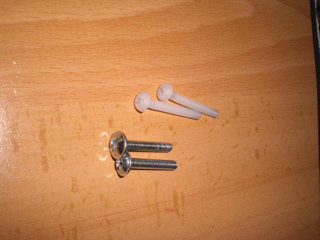 jaware escribió:¿Sería bueno cambiarlos por estos metálicos que tengo? Son del mismo paso pero la cabeza es más ancha. ¿Podría ser interesante ponerle a los tornillos de nylon una arandela grande que les permite "coger" más ala?