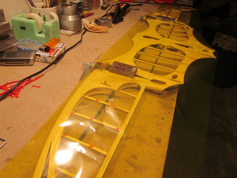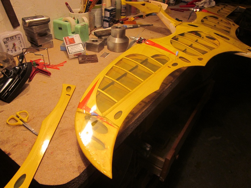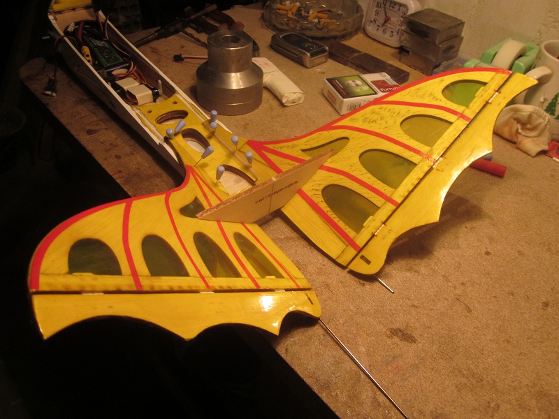 aunque aun queda acondicionar servos y demás elementos en el interior del fuselaje o panza del bicho, bueno pues lo que os muestro son los adelantos en el tema de los alerones, que ya están terminados, saludos….