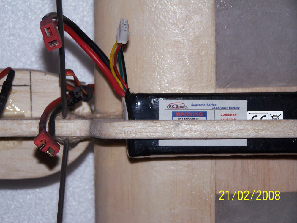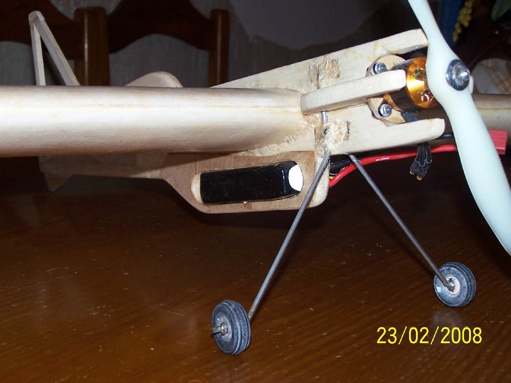 yo reforzaria un poco ( si quieres solo con un cachito de tela de nylon y epoxi ) los huevillos al pajarito , que tienes la veta de la balsa en sentido horizontal y la bateria pesara lo suyo, ahora bien , admitamos una 'toma' de tierra' un poco 'huy huy huy ' y lo mas seguro es que se le caigan los susodichos al suelo :twisted: :twisted: :twisted: