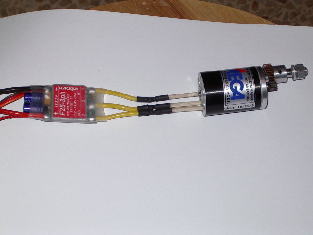 hola pongo una fotos del conjunto el motor es un mega 16/15/3 con una reductora 3:1 un variador de 25 amperios y una bateria de lipo de 3 elementos de2300miliampers que avion tipo maqueta me recomendais para montar con este combo gracias