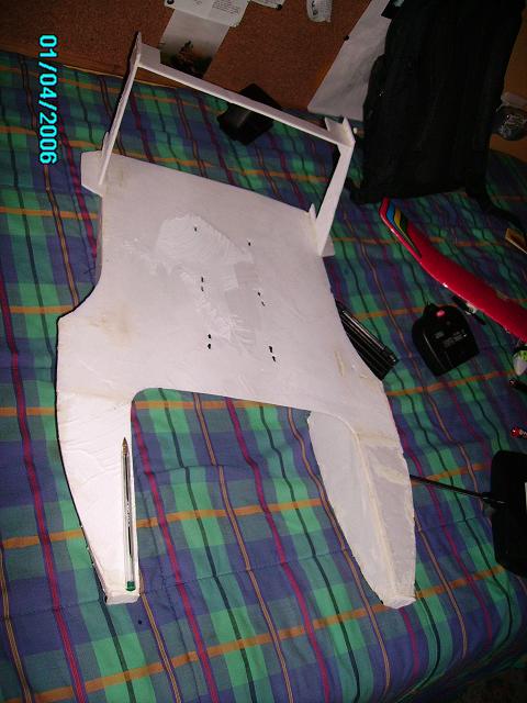 Hola a todos! he visto graciosillo el hidrofoam ese y me he dicho a mi mismo que queria 1. Asi que tras 3 dias he hecho dos versiones, uno en carton y uno ya acabado en depron de 3 mm. Hasta aqui fue facil, pero necesito consejo sobre la electronica (me refiero a que tengo q comprar desde el mando de 4 canales hasta el ultimo de los 3 servos q necesito).