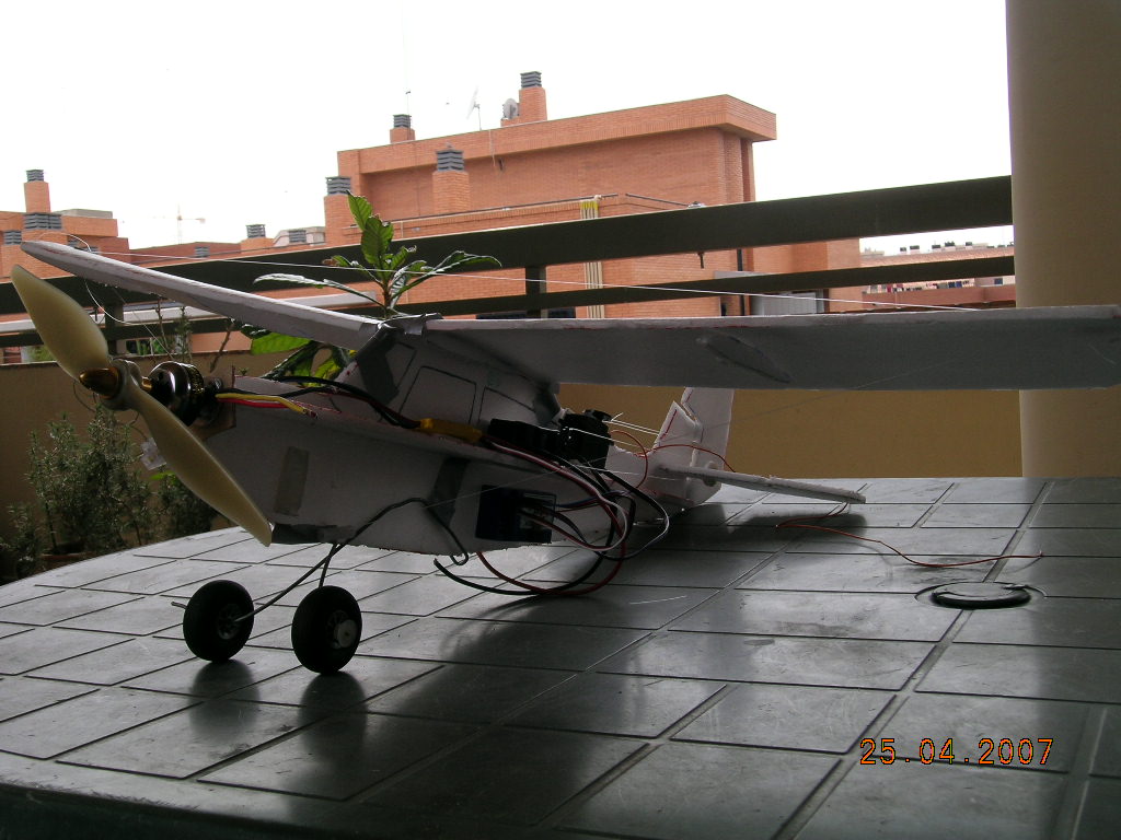 Tengo previsto, en compruebe que vuela, cambiar receptor y servos, para bajar la carga alar y que pueda ir más lento... que al final es lo que prentendía: un avión tranquilo para aprender y con un vuelo tan lento que sea apto para volar en un solar urbano. También tengo el Easy Star y me parece que va deprisa :oops: .