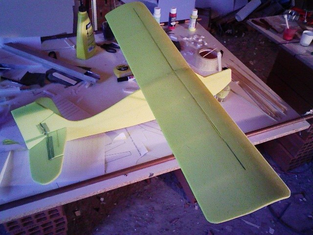 tcp Pon fotos un poco mejor :wink: por lo que veo no se si te has equivocado con lo del diedro. Las alas visto el avion desde el morro tiene que hacer una V y tu me parece que has echo las ala en flecha como las alas volante y este avion las lleva recta. Si te pesa 440 g vas muy bien.
