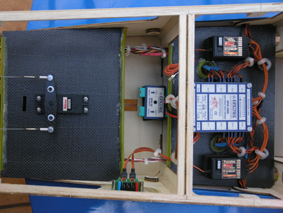 Cuando llegue a casa intentaré poner en el foro alguna de las múltiples fotos que tengo del interior del avión y su instalación, pues por ejemplo en dirección llevo dos servos y para que uno no queme al otro por un esfuerzo llevo un sistema de triángulos muy eficaz que vi que llevaban todos los fanceses en la Copa Breitling.