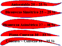 He visto que hay alas que son (plano-convexas) y (biconvexido-asimetrico y simetrico)