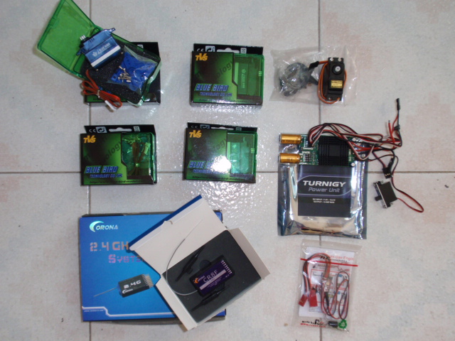 Buenas 5villas, creo que tienes razon, el modelo comparado detalle a detalle es muy parecido aunque la decoración es distinta, eso me tranquiliza, que te parece el paquete de la electronica que he puesto, estoy un poco reticente con los servos blue bird , pues me dijeron que no son muy fiables, sin embargo las pruemas que les hago en mesa dan muy buena pinta en velocidad y fuerza.