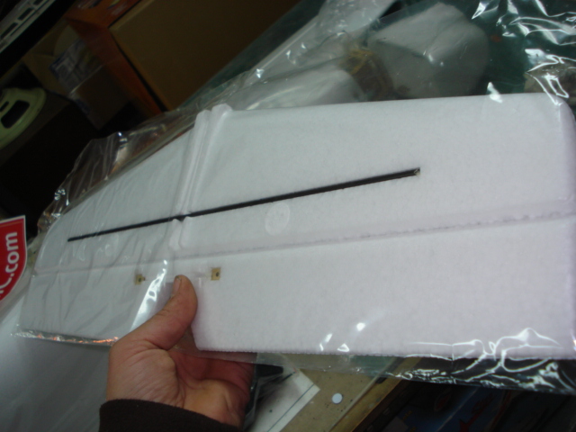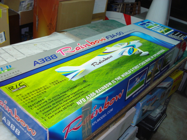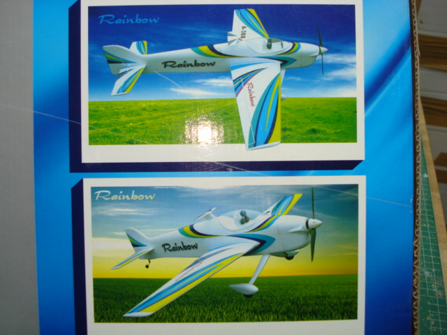 y una foto del vendedor: El avión mostrado en la caja viene con tren fijo aunque da la posibilidad de montar un pequeño tren retráctil (no incluido), las alas tienen el cajeteado realizado para ello, al estilo de sus hermanos mayores de la F3A. De todos modos el tren fijo está muy logrado estéticamente y esta va a ser la opción elegida en el 90 % de los casos, seria complicarnos un poco la vida meterle un retráctil.