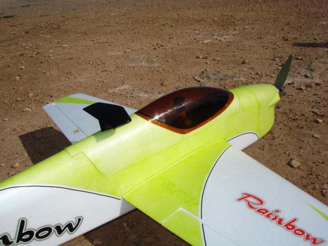 En los siguientes vuelos probé unas baterias Turnigy de 3300 Mah de 25C y 4S también, estas son un poco más pesadas y adelantan un poquito el centro de Gravedad, en general el avión mejoró y a mi personalmente me gusta más. Vuela como más trazador y no le afecta tanto el viento, el avión es un F3A puro camuflado de "corchito". Sin duda va ser de mis favoritos, lo llevo entero en el coche, es bajarlo y hechar a volar, la facildad de acceso para la bateria es total.