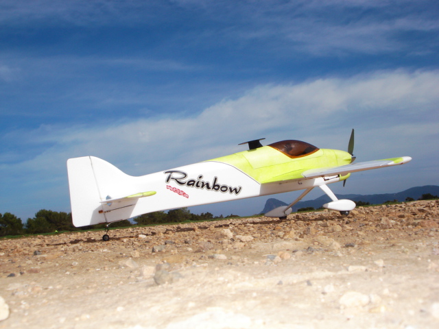 Total, porrazo al Stick de gas y al aire en 3 metros, uffff, que caracter, nada más subir algo de altura le meto recorridos cortos de Dual Rate, es tremendamente sensible a los mandos, (sin duda los grandes alerones y los generosos elevadores tienen mucha culpa de ello), el centrado coincide con el de las instrucciones y parece correcto aunque me parece ligeramente retrasado para mi gusto.