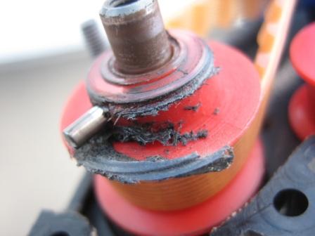 La pieza roja de la que hablas, el Tail Pulley lleva otra pieza que la cierra, el Tail Pulley Flange (ver el manual), pues esa pieza se suele montar al revés y hace que tenga el eje juego en horizontal.