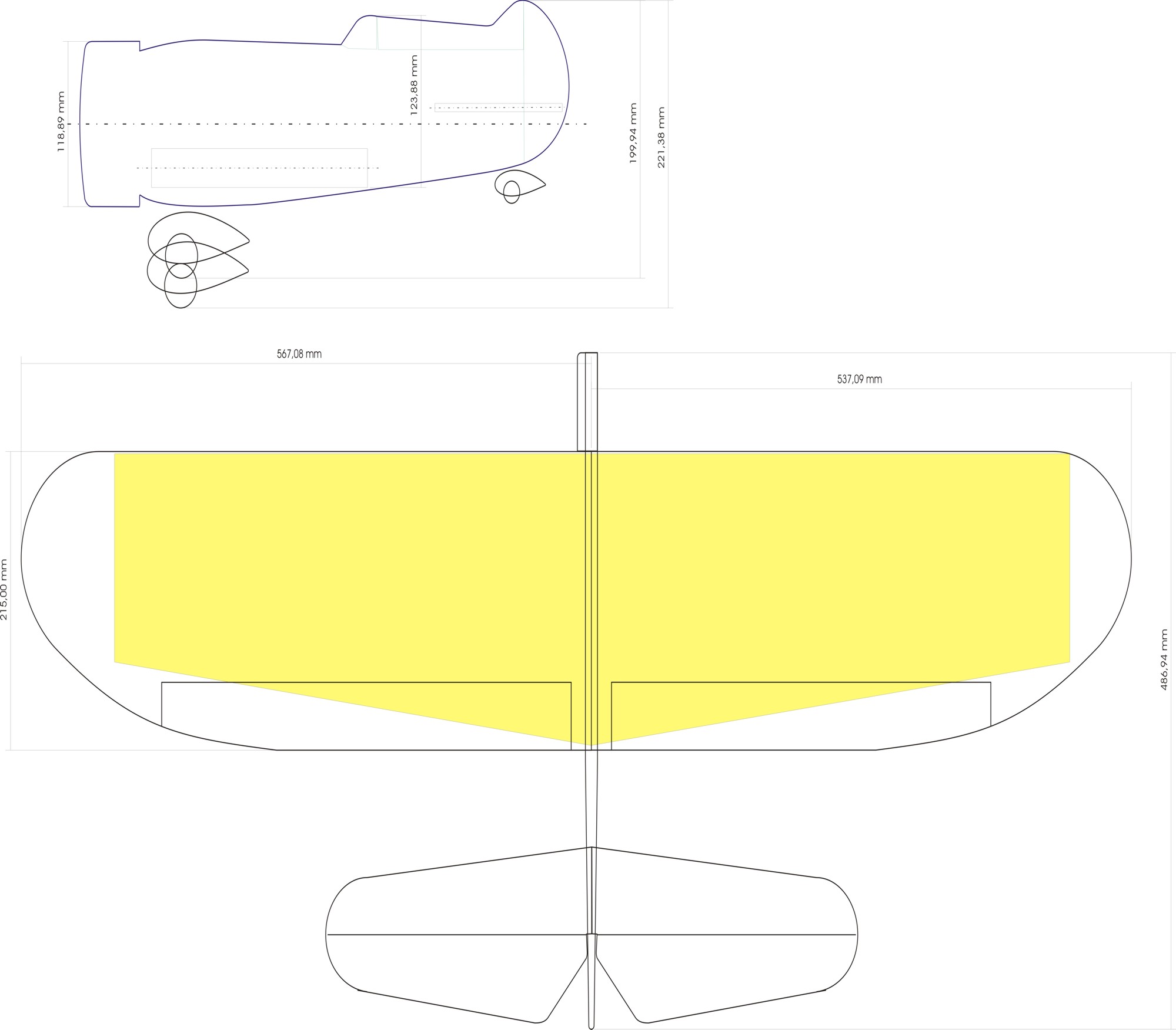 por eso el aspecto del fuselaje es de "grandote"... se podria afinar un poco mas las lineas, sobretodo en altura del fuselaje y