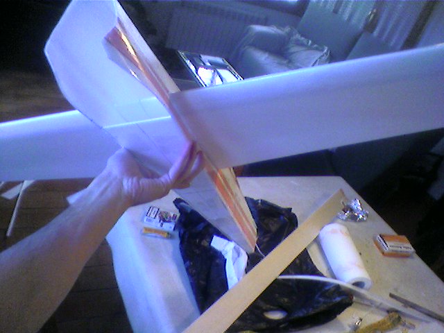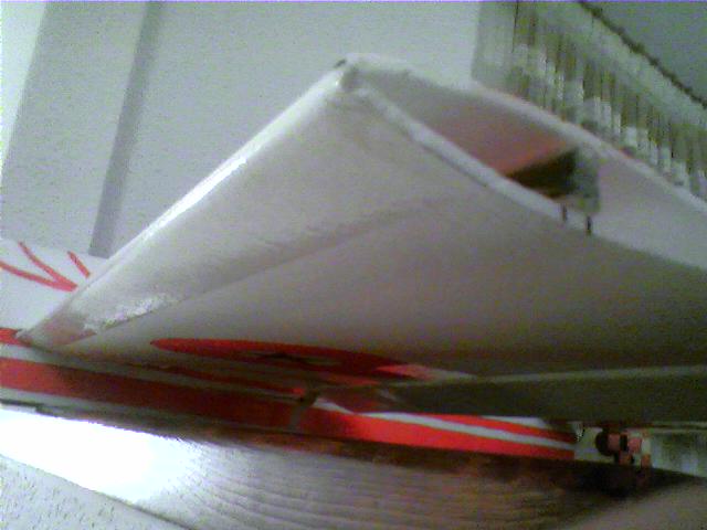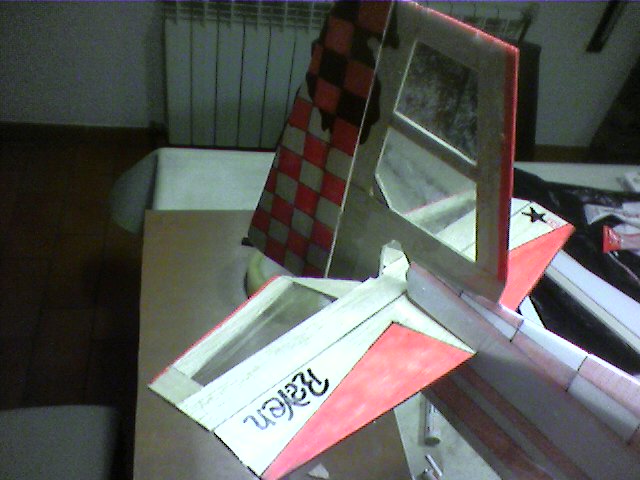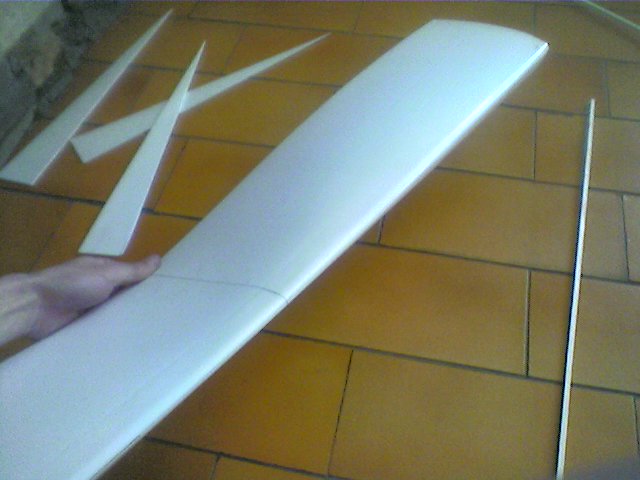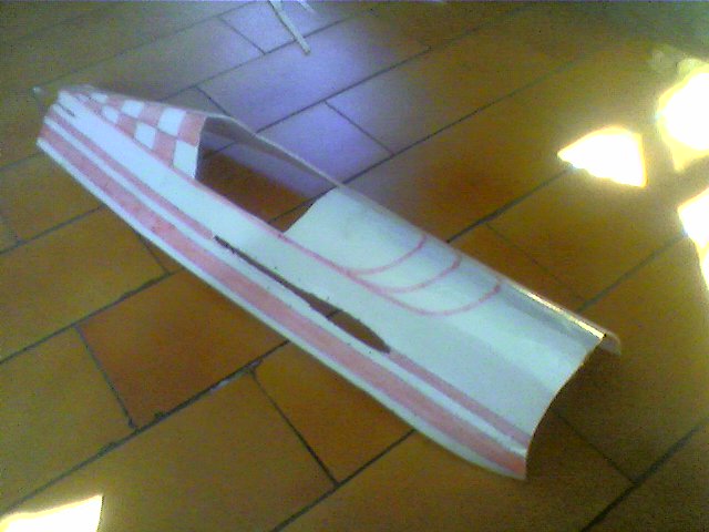 Una vez pegada la varilla interna del ala y pegadas las puntas trasera donde iran los alerones, podemos empezar a pensar en la decoracion.