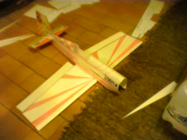 Pintamos los dos laterales, ya que ahora es muy facil hacerlo por estar planas. Yo lo hice con un permanente sobre el depron 3mm directamente