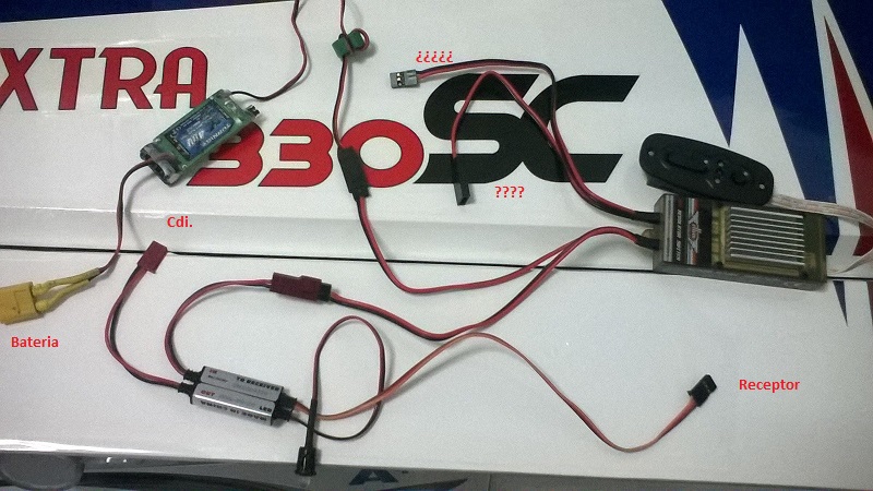 GRACIAS¡¡ Jose Luis me estas ayudando mucho... no es un conector libre jeje es el de SWICHST KILL, que lo he metido al canal 5 de la emi .... la lucecita esta en su sitio, ese regulador TURNIGY 10A , tiene dos entradas para poner dos baterias, cosa que he echo con una de 1000mha y otra de 1300 mha, teniendo un total de 2300mha. para todo el sistema , las bateiras son de 2s con 20c de descarga. e iran en las alas , ..Ya he probado el funcionamiento de todo , solo configurar con los trim . Es muy comodo dar ignicion desde la emi con el KILL, no sabia cual esta avanzada la cosa.