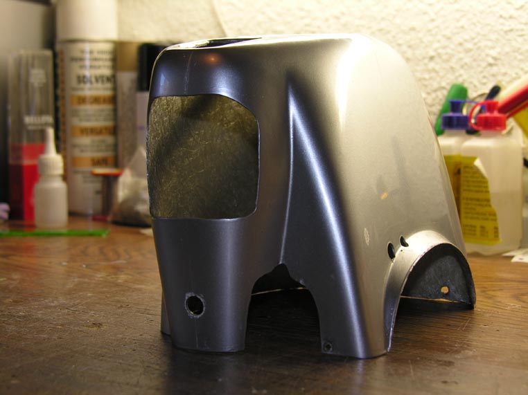 Como podéis ver en la foto para rehacer la carena hay que tapar los huecos abiertos para los culatines del saito y para el escape, así como los registros para acceder a la carburación, etc.