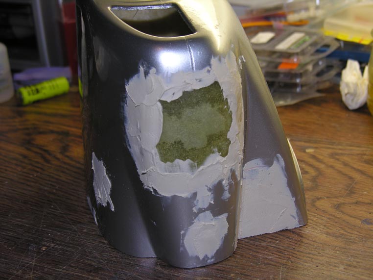Llegados a este punto la carena esta reconstruida. Aplico masilla de carrocero para tapar los desperfectos y la lijo con lija al agua para dejarlo todo a falta de pintura.