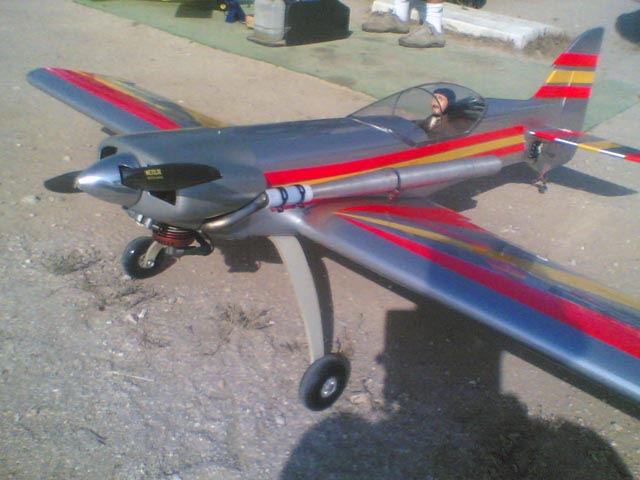 La verdad es que con la pipa asi es lo mas comodo, pornerla de otra forma hubiera sido de locos, o asi o justo por debajo del fuse pero en ese caso seria un coñazo para poner y quitar el ala, creo que has acertado al 100% con la colocacion y con el conjunto avion-motor.