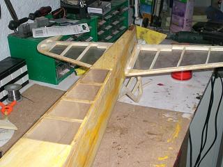 Al primero (El del aporrizaje) le he hecho varios cambios puesto que he entelado estabilizador y cola con fibra de vidrio de la mas fina.