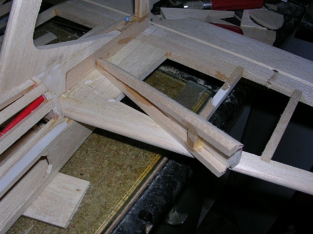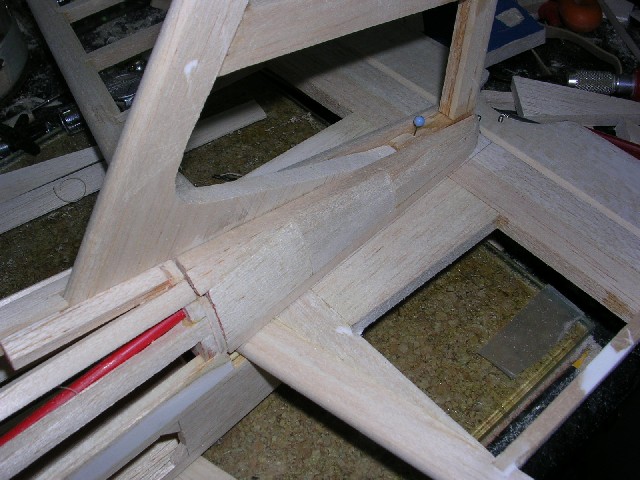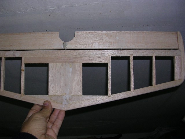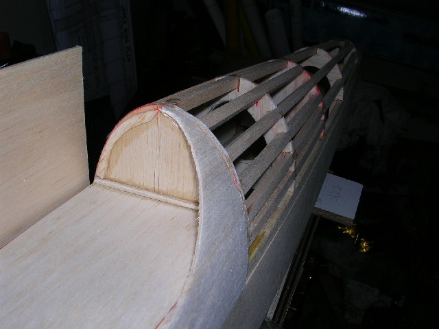 Lo primero ha sido reparar el ala que es lo que mejor está. Tras sacar una plantilla de las costillas , a partir del marginal , os muestro un trozo de ala ya reparada.
