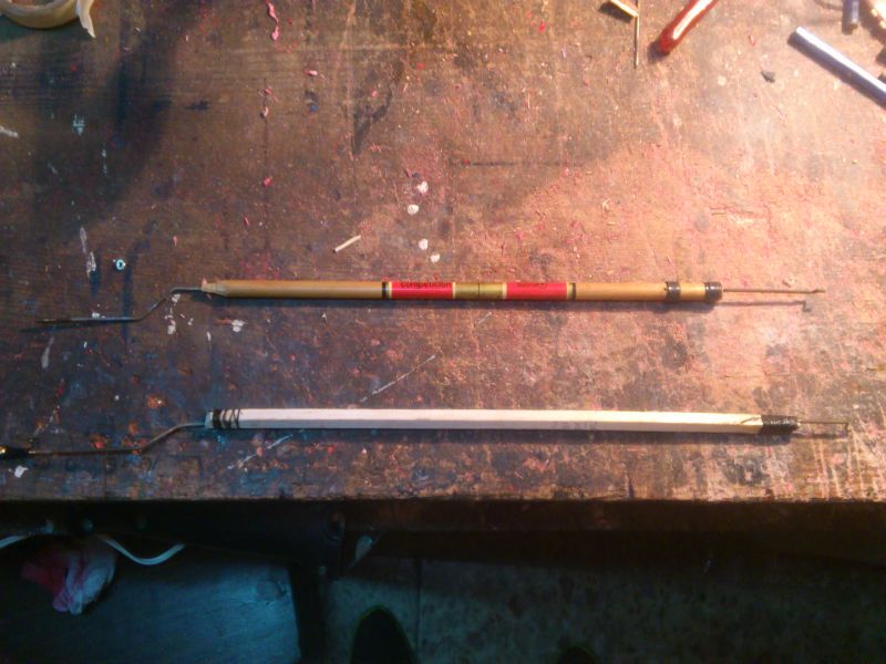 Hoy ha tocado tema de transmisiones y retocar algunas cosas. Seguramente muchos de vosotros habréis usado estas transmisiones: liston de balsa y flecha de madera recortada en los extremos. Si las vuelvo a montar seguro que irían igual de bien, pero ya metidos en harina vamos a usar materiales mas actuales. Toca paseo por decathlon a ver que encuentro. Lo han cambiado todo de sitio pero acabo encontrado la varilla de carbono adecuada. Debe tener 5 o 6 mm de diámetro por lo que una varilla roscada de 2mm entra al pelo con unas gotitas de ponciocrilato... pues a la saca !