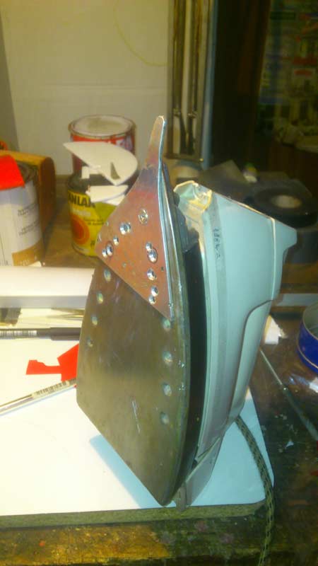 La plancha que tengo ya esta curtida en mil batallas. Se ha caído una pila de veces y todavía funciona. Le hemos adaptado un accesorio para llegar a las zonas difíciles. Se quita y se pone rápido con 2 tornillos que amarran en los agujeros donde antiguamente salía el vapor.