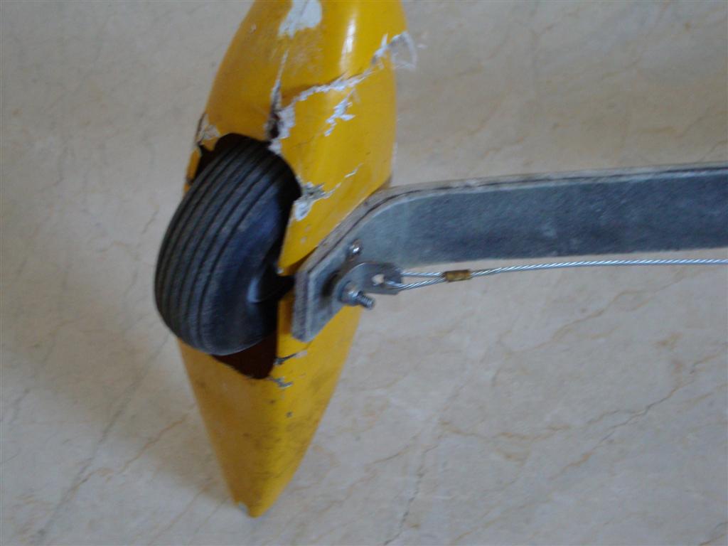 .Hay varias soluciones, es bueno que amortigue algo, pero no tanto.Lo ideal es arriostrarlo (unir cables del tren al fuselaje) y poner muelles fuertes.Si te resulta petardo, no le pongas los muelles.Si lo haces soldado, tiene que ser un soldador de por lo menos 100 w