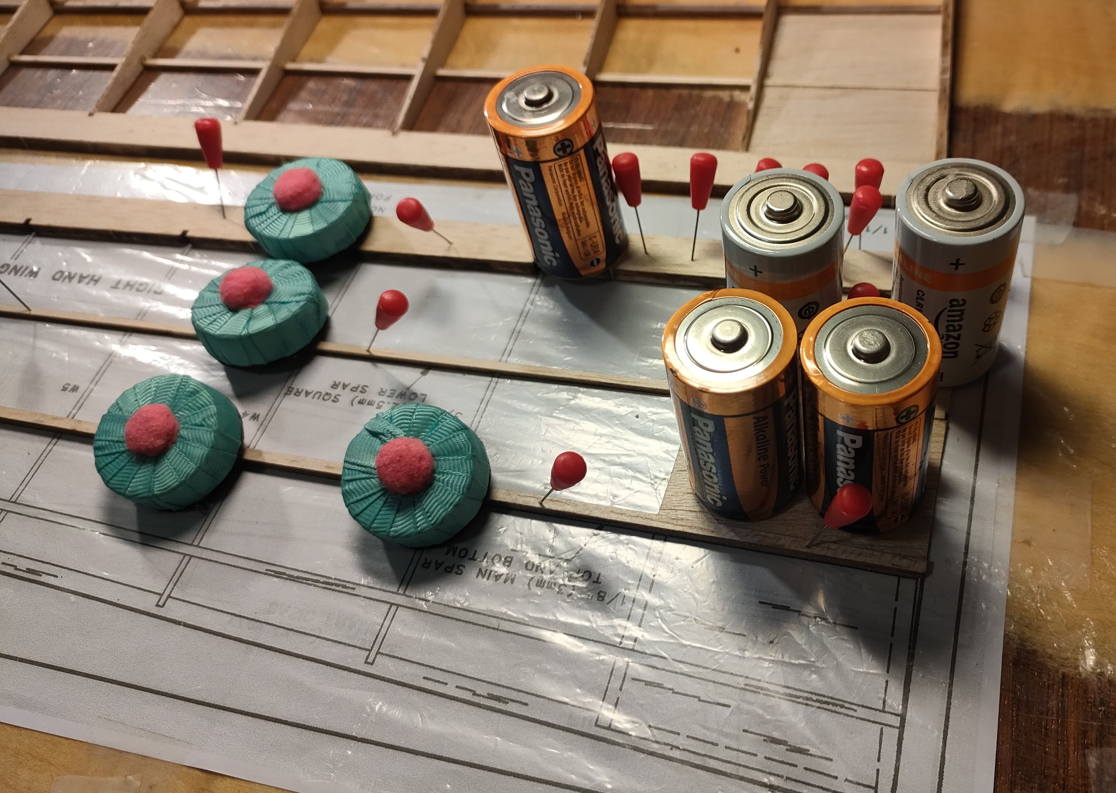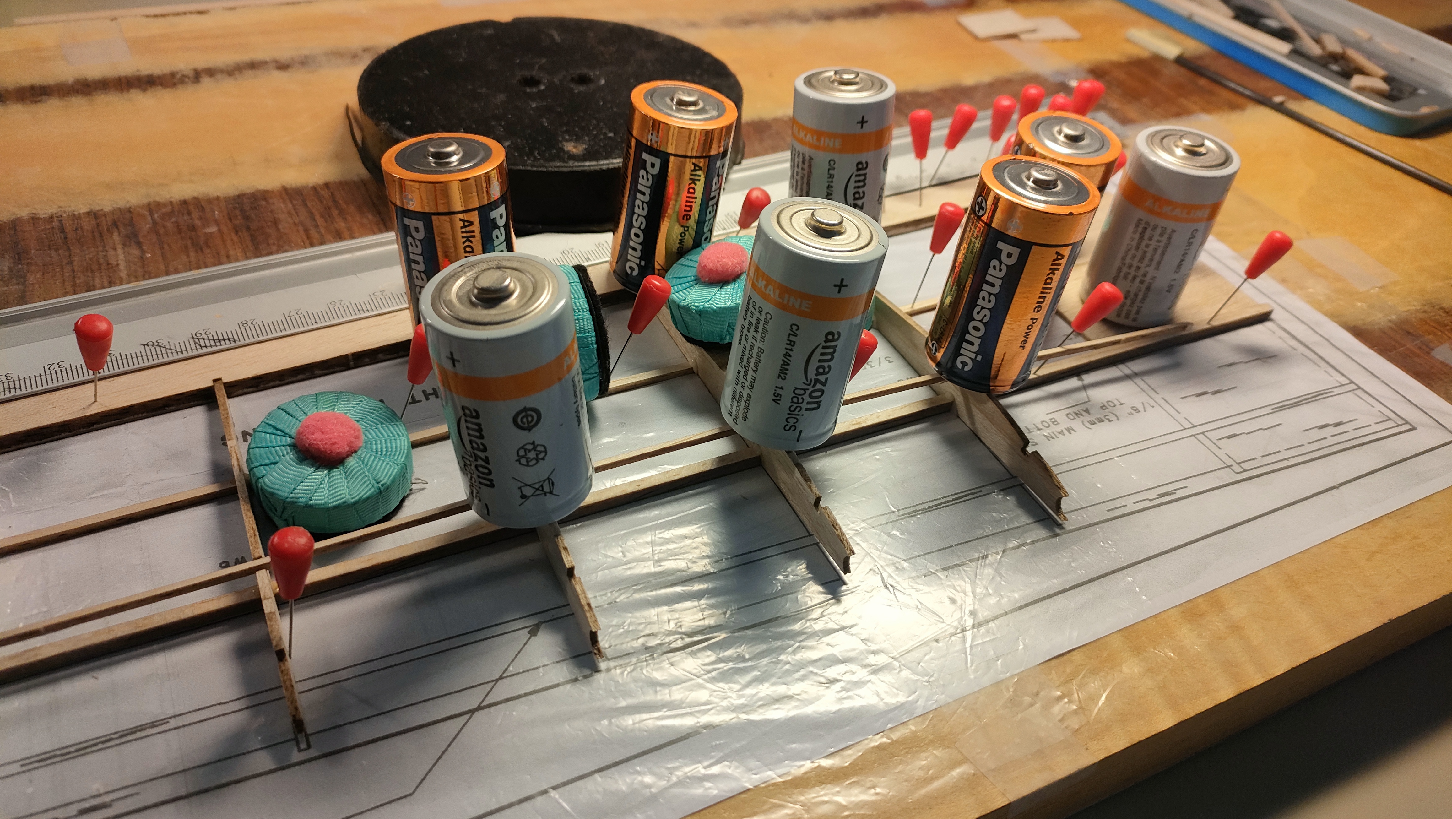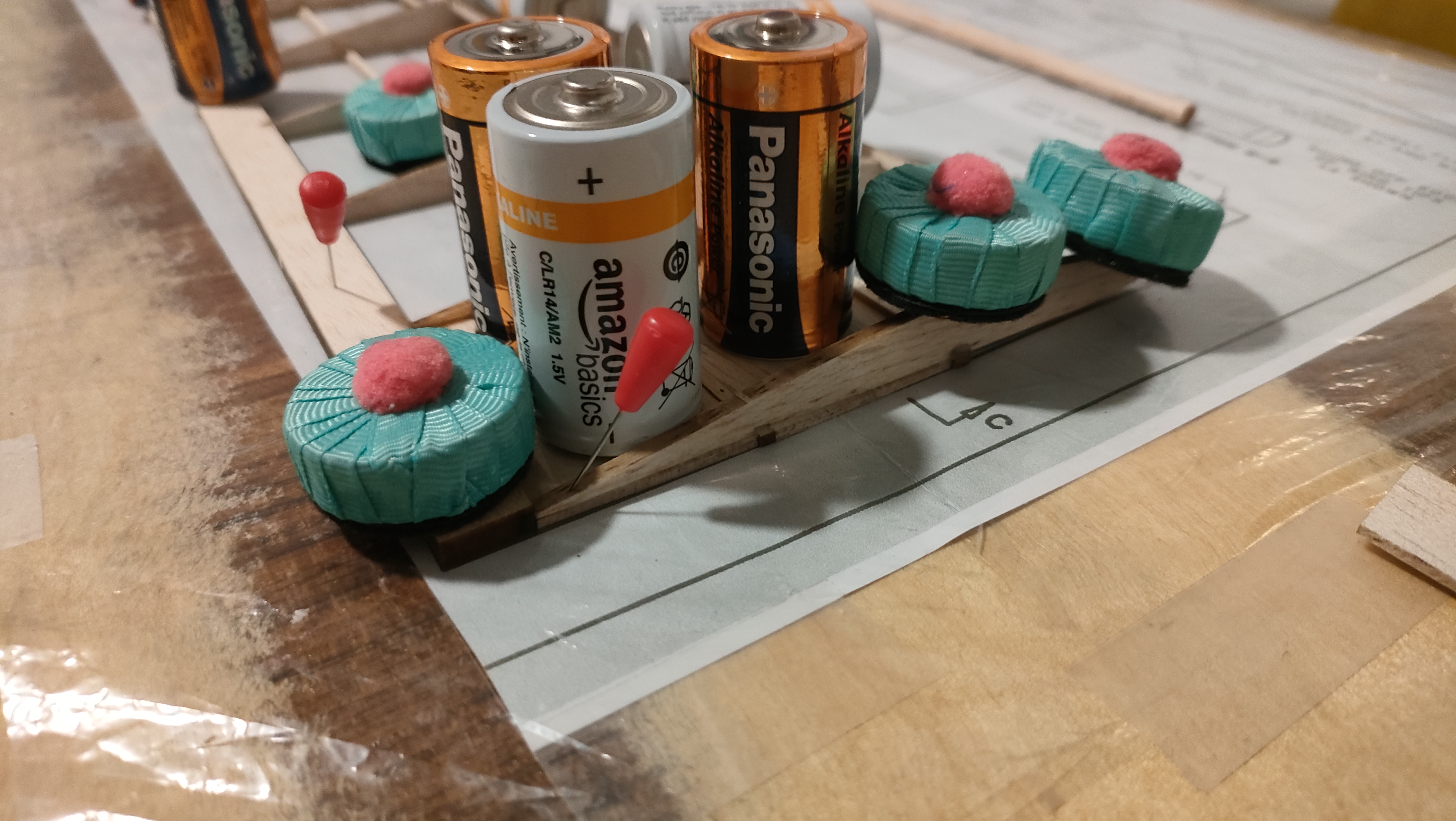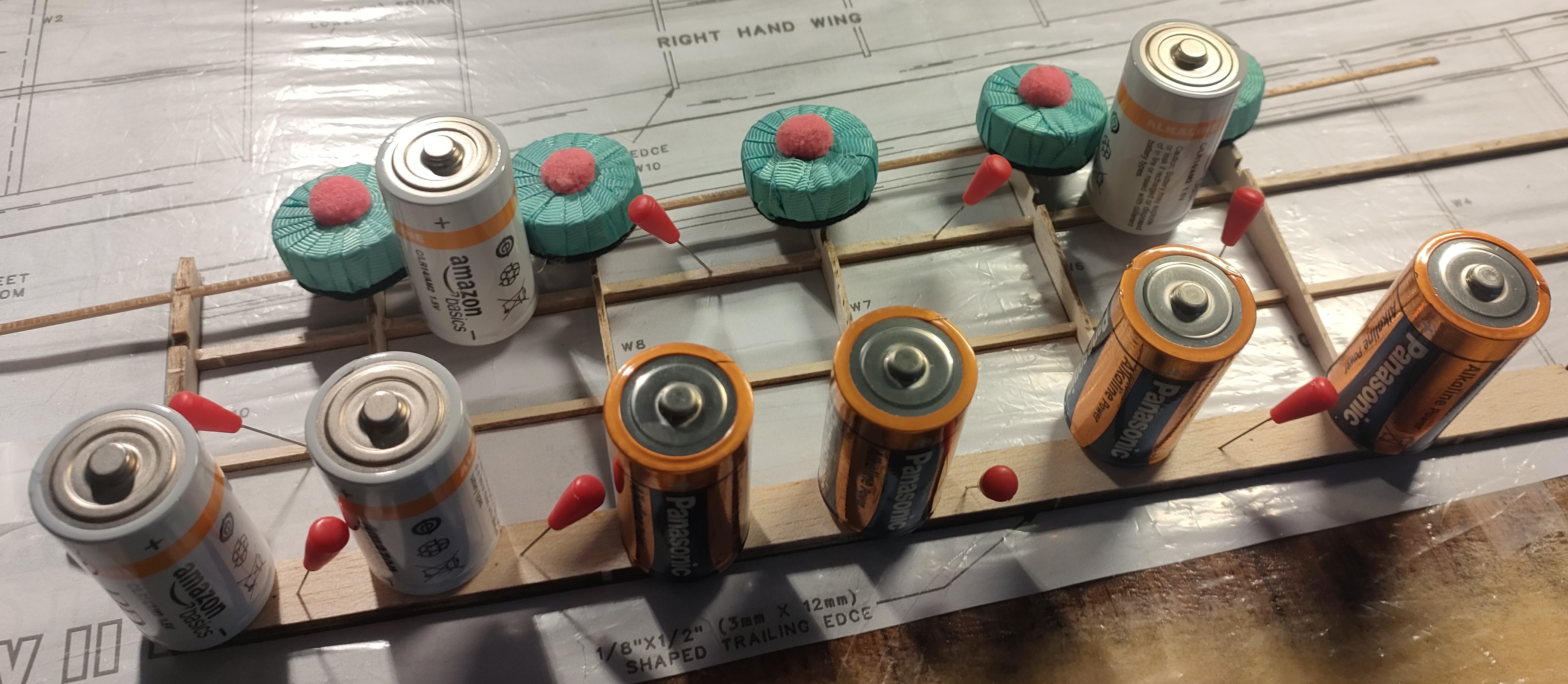 Para sujetar mientras se seca, probé con pilas, pero es un engorro.