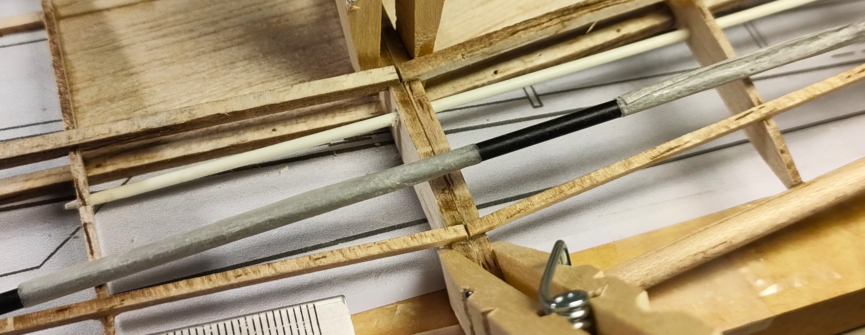 Eso es, y para la varilla del timón de profundidad tengo varilla de carbono de 0.8mm, y tubo de teflón de diámetro interior de 0.8 para conducirla y tal vez apoyar en las cuadernas en algún punto