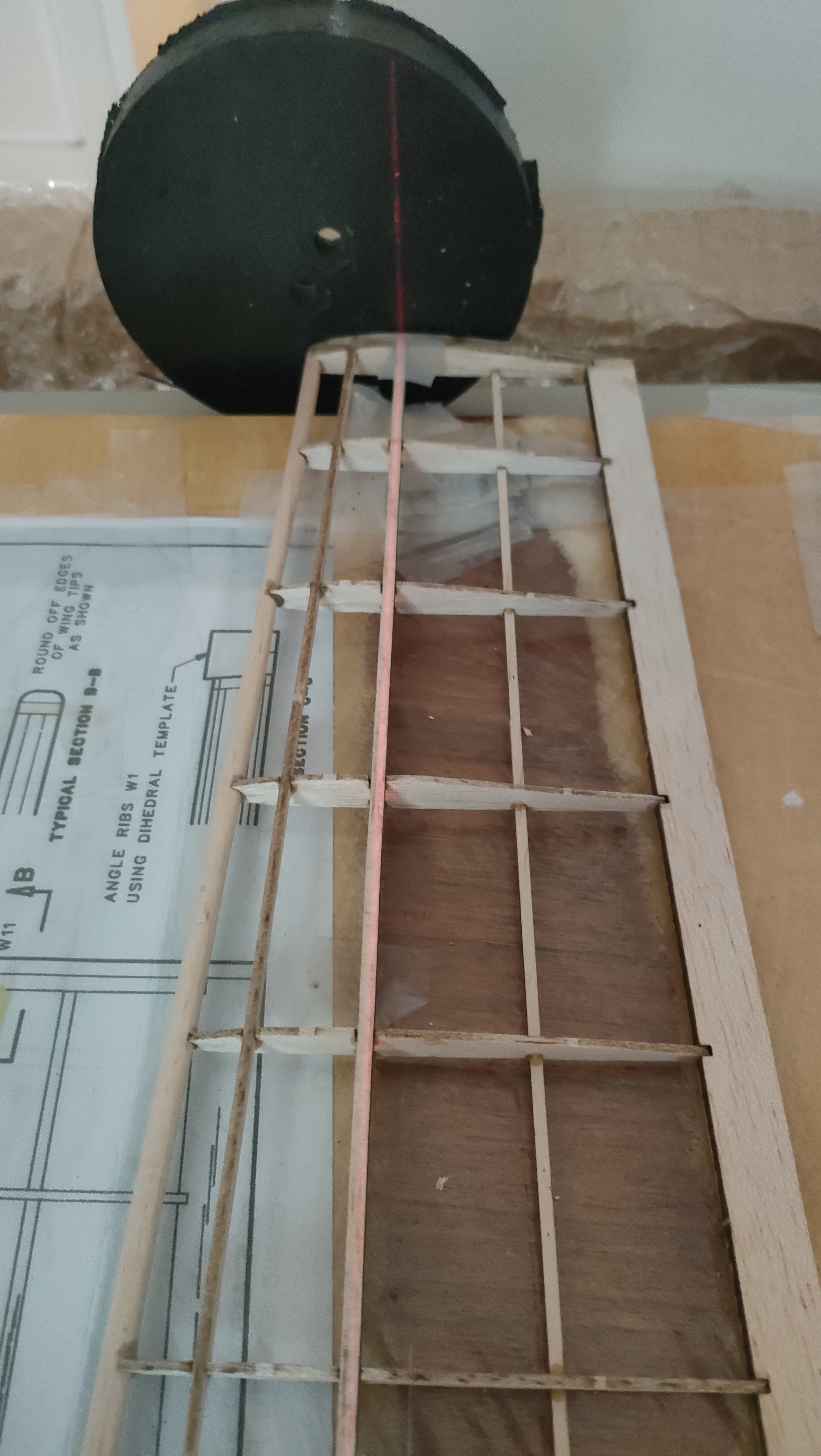 Antes que lo olvide otra vez, que útil o herramienta utilizas para la alineación ? Hay varias fotos con las lineas laser, yo uso junto a los Robart los AccuPoint de Great Planes que son un poco más precisos que los de Robart sobre todo para el reglaje de las superficies de control pero el puntero laser no tiene mucha potencia lo que me lleva a pensar que estás utilizando otra cosa ......