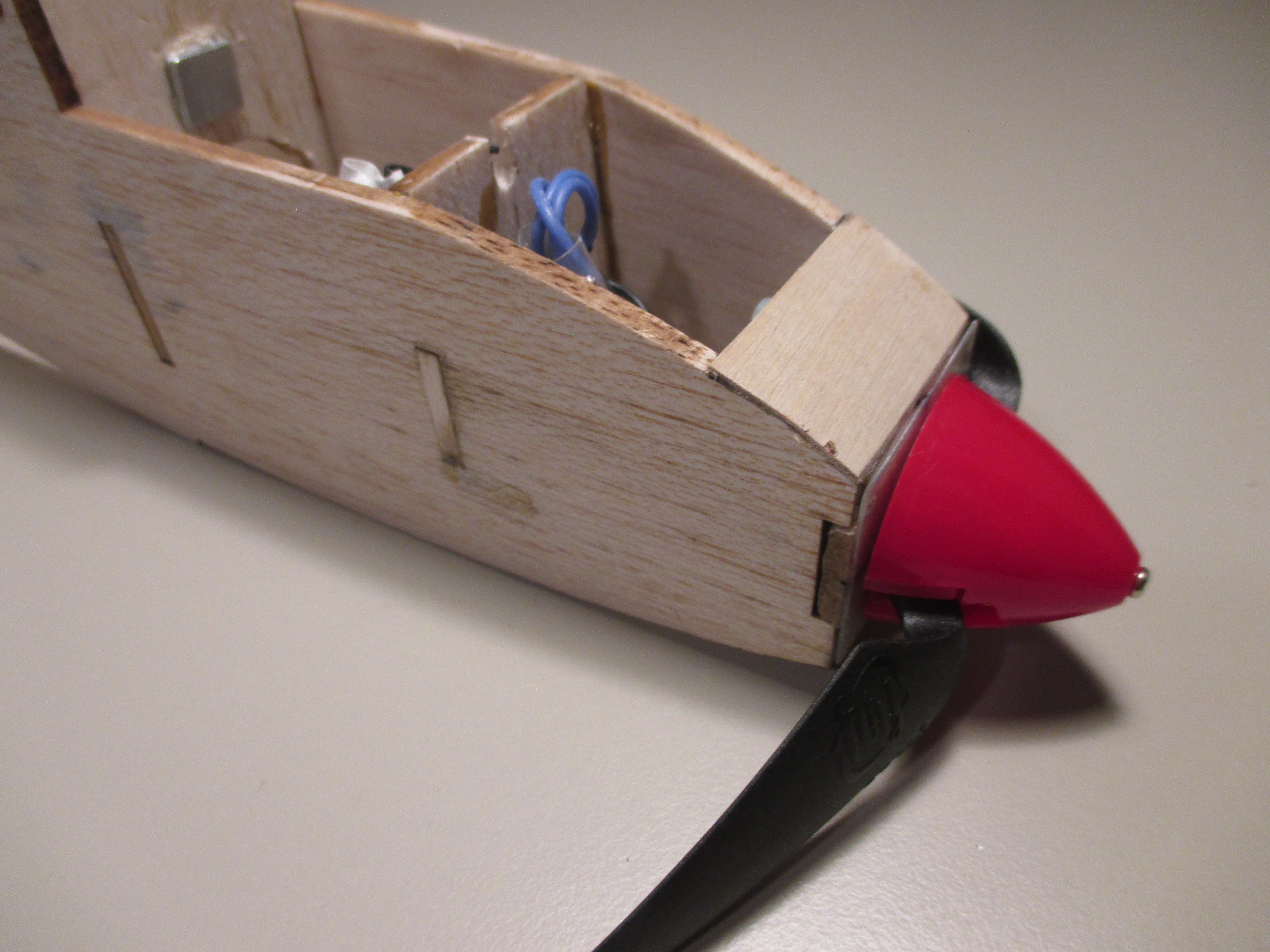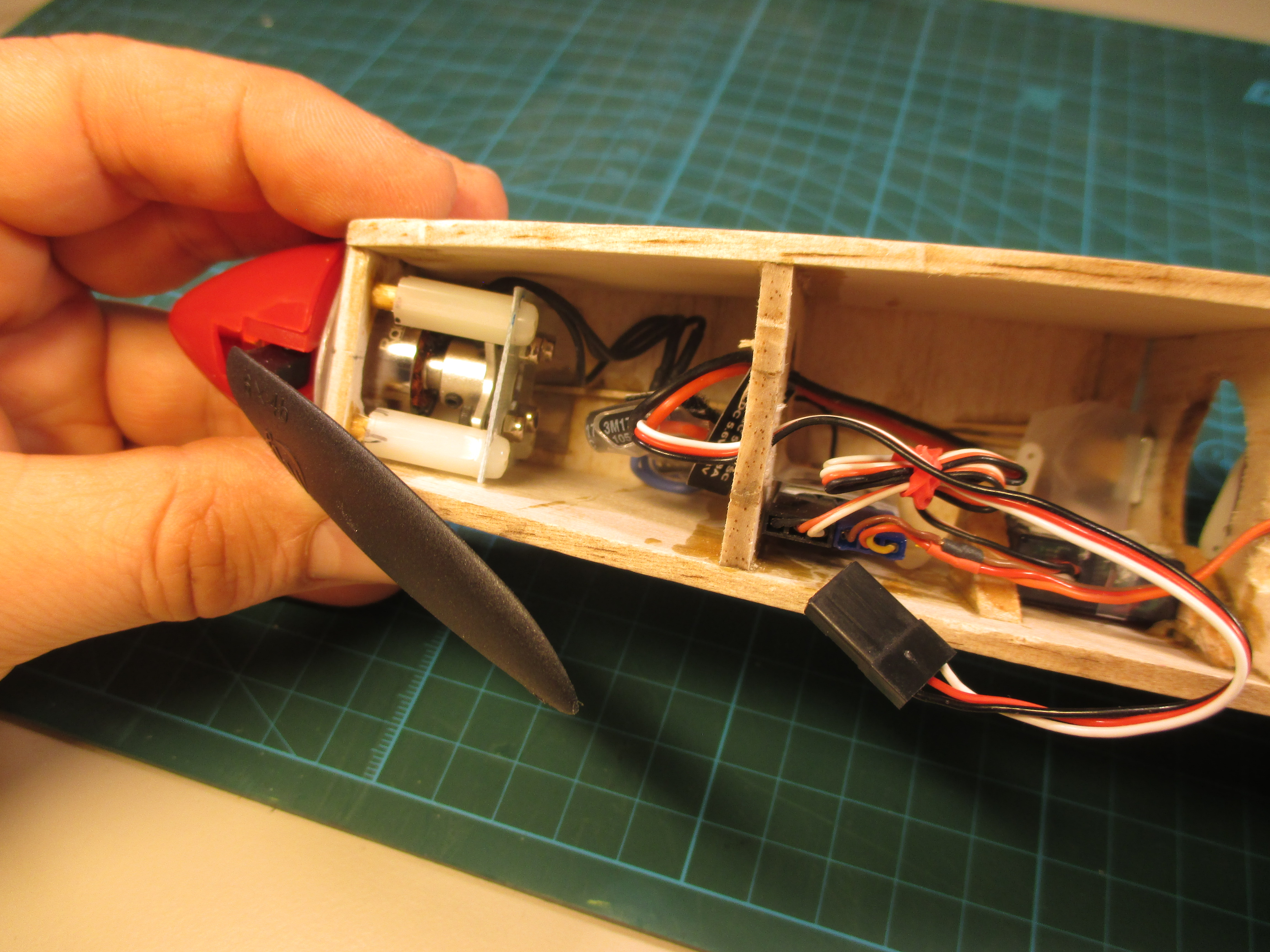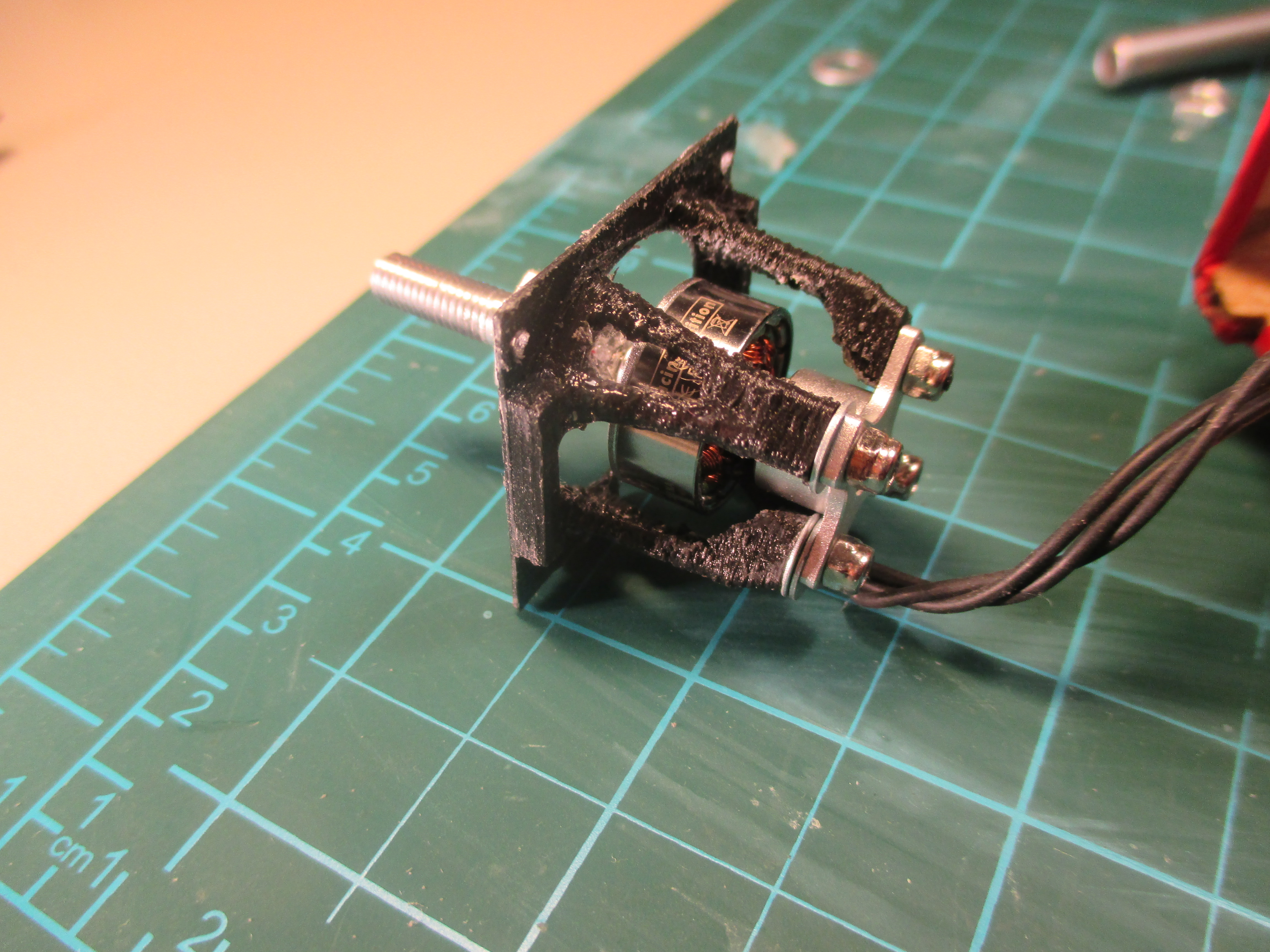 Cuando ya estoy contento, aprieto las tuercas que sujetan la base del motor con una allen por dentro y una llave de tubo por fuera. Las tuercas son autoblocantes para quitarme disgustos más adelante. Me he dado cuenta de que no he puesto arandelas, ya veremos si al final me animo a desmontar y corregir eso; para ese tamaño y sobre fibra de vidrio no sé si merece la pena.