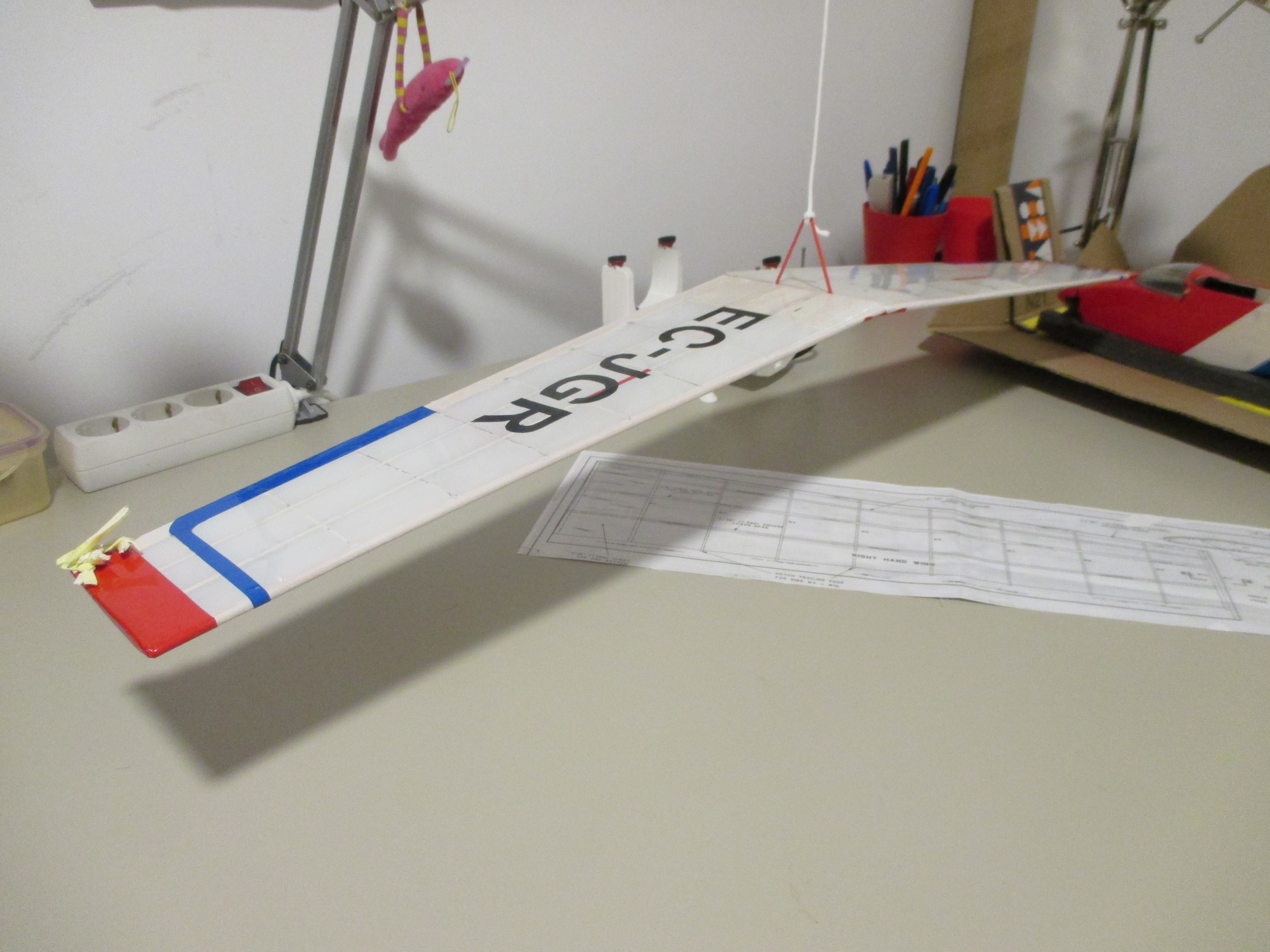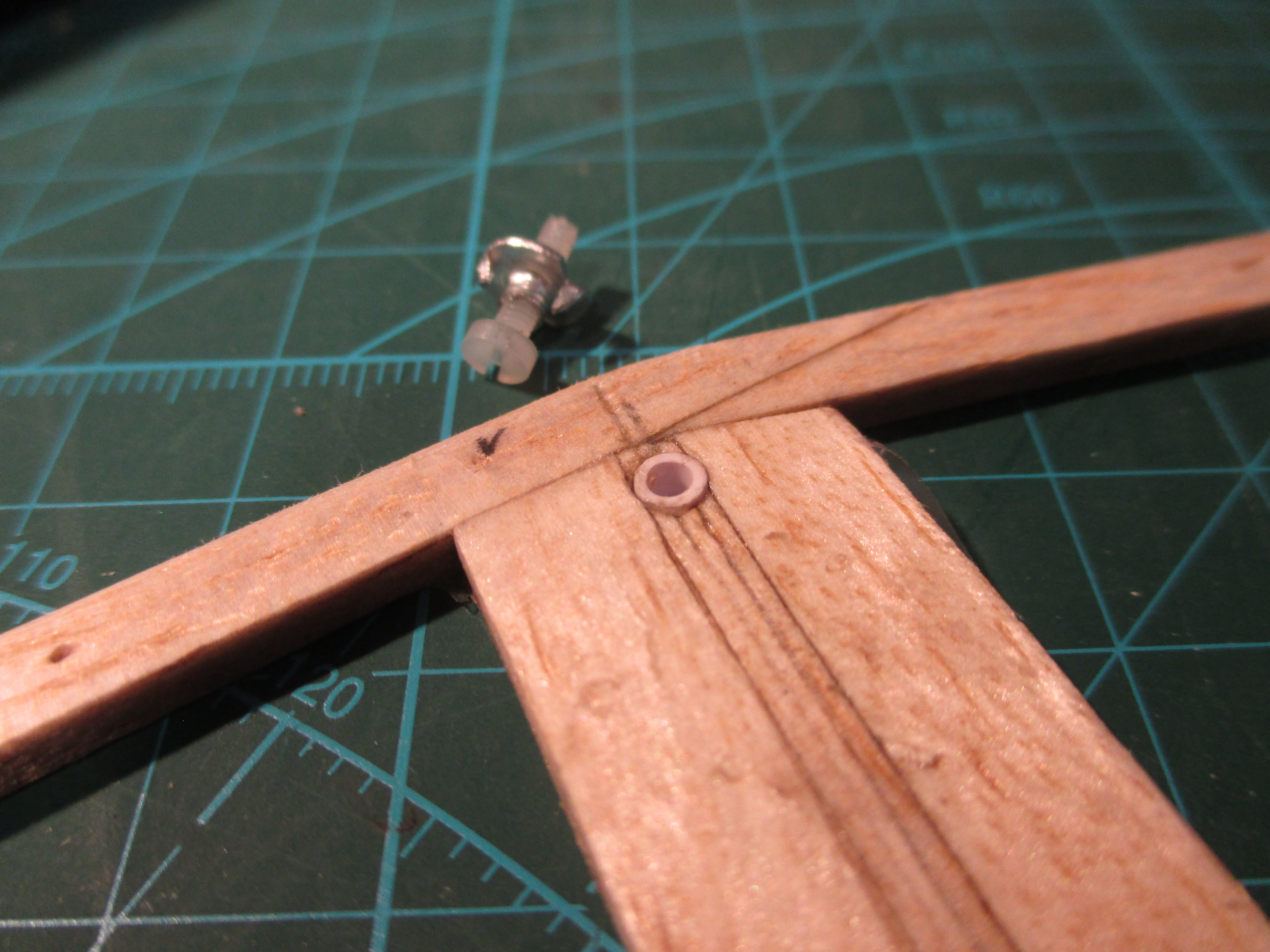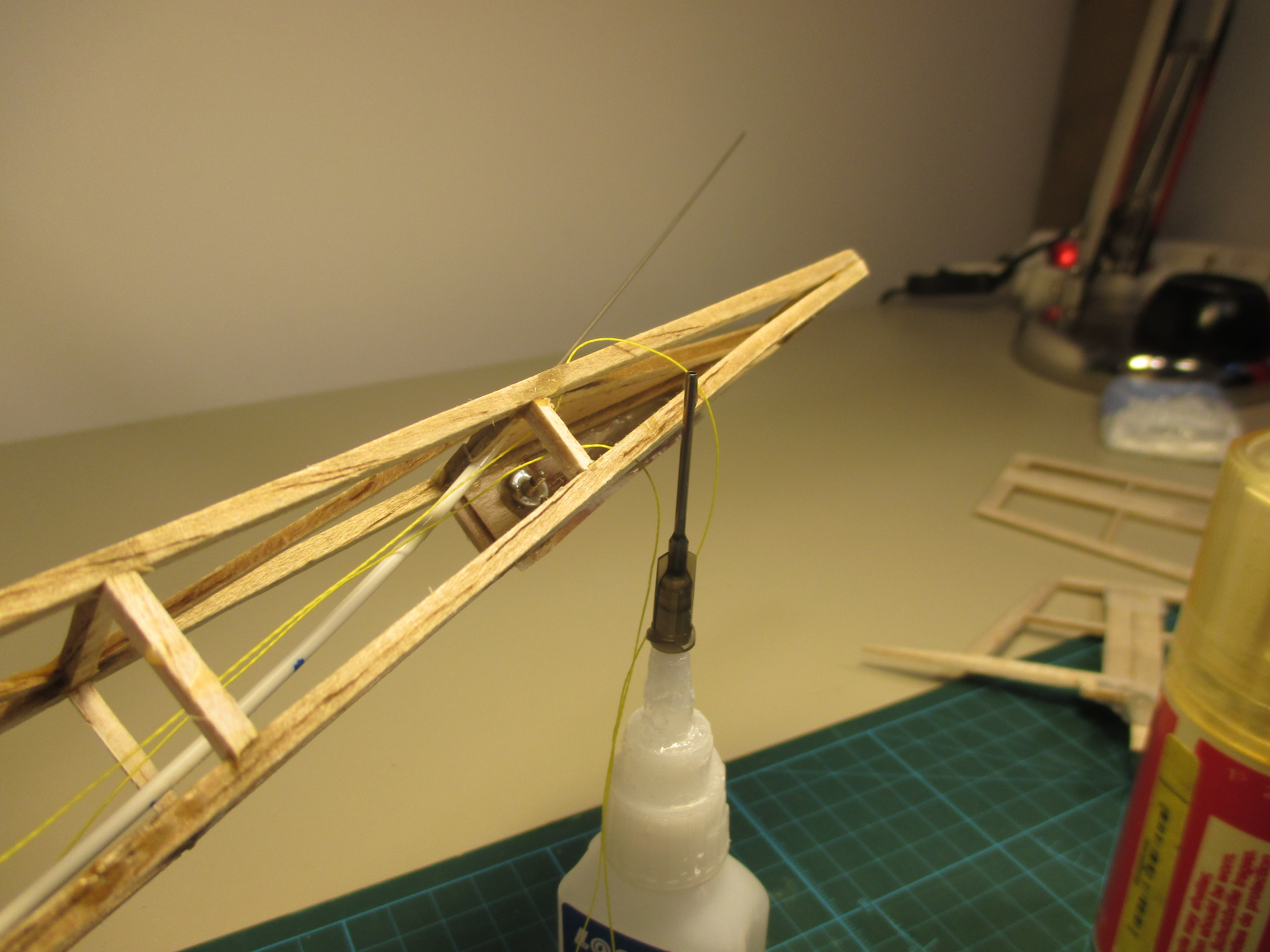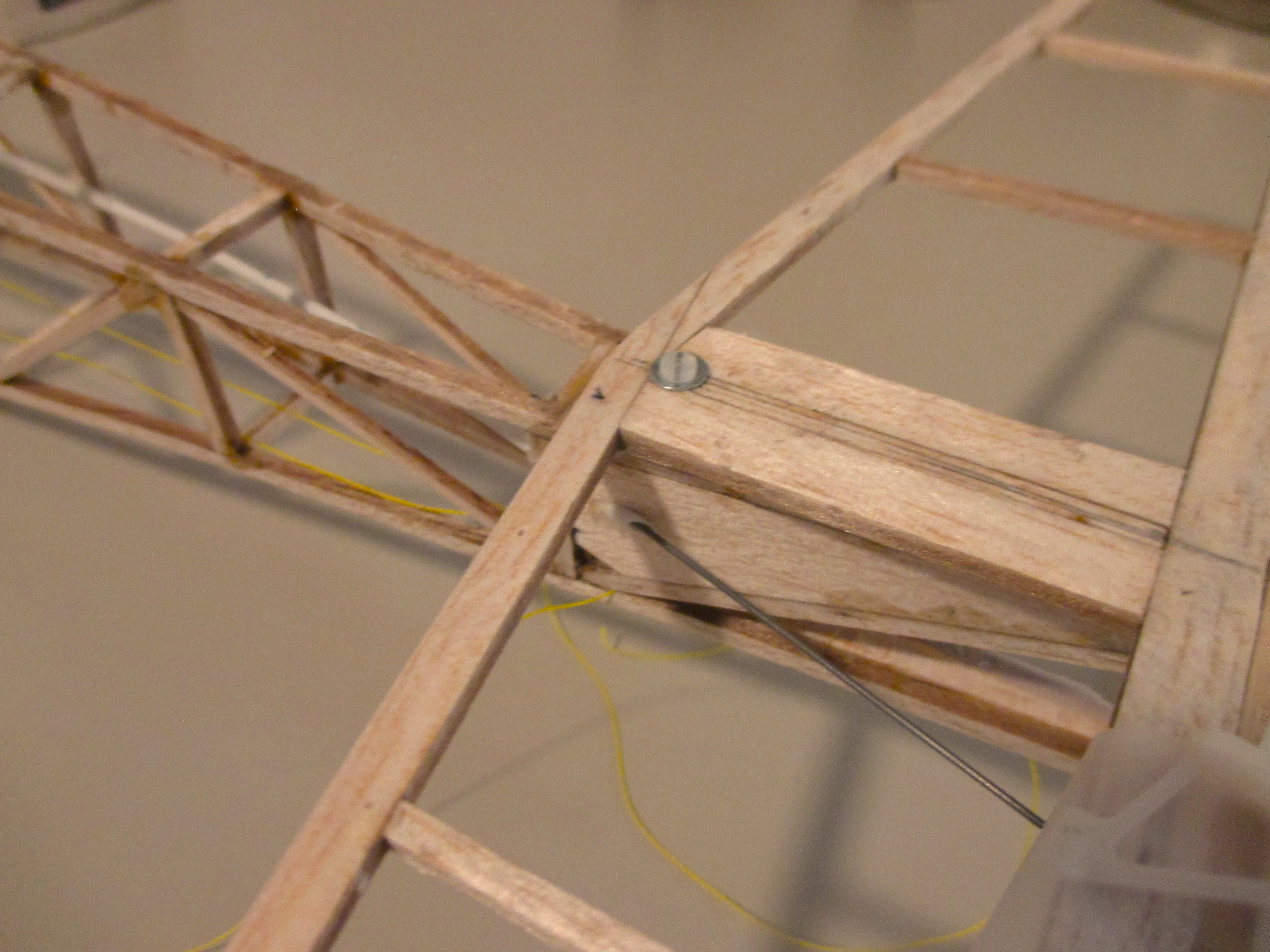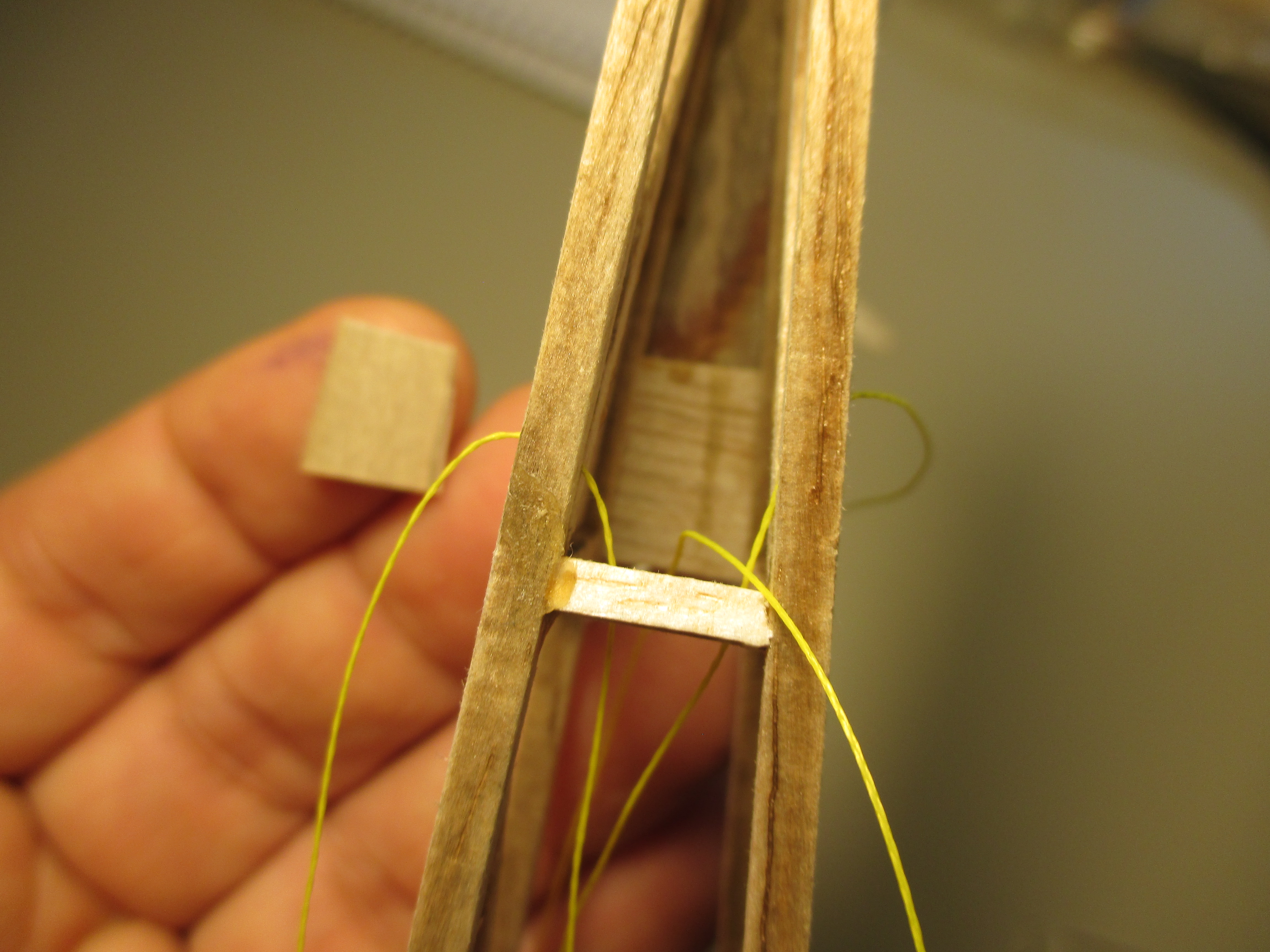 Llevo el conjunto a su sitio, y deslizo poco a poco el conjunto desde el cono para asegurar que queda simétricamente instalado. Aún puedo ajustar un poco las longitudes desde los espaciadores, atornillando o desatornillando. Cuando acabe las pruebas pondré fijatuercas (metacrilato) entre el bambú y el nylon para que no se mueva.
