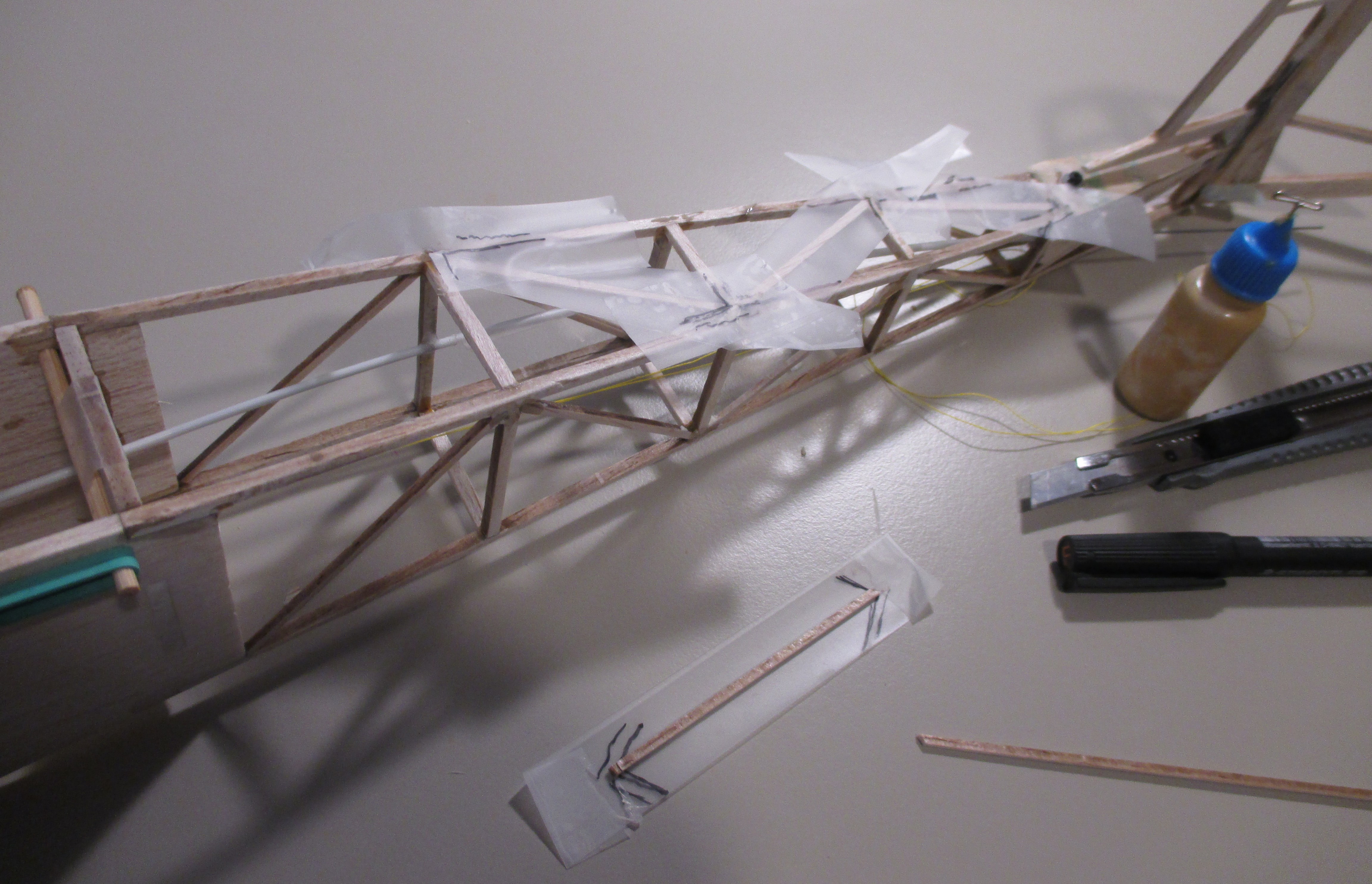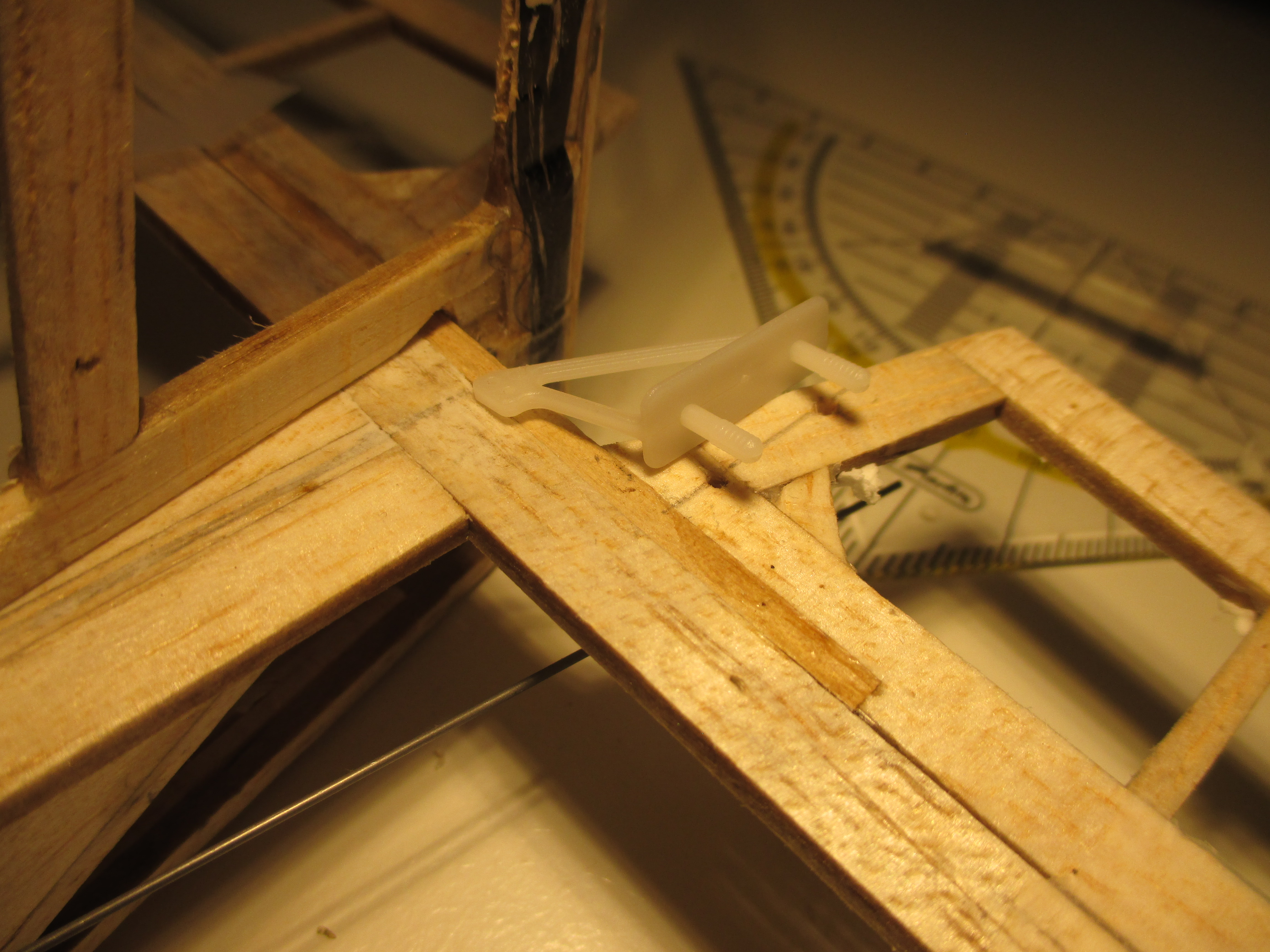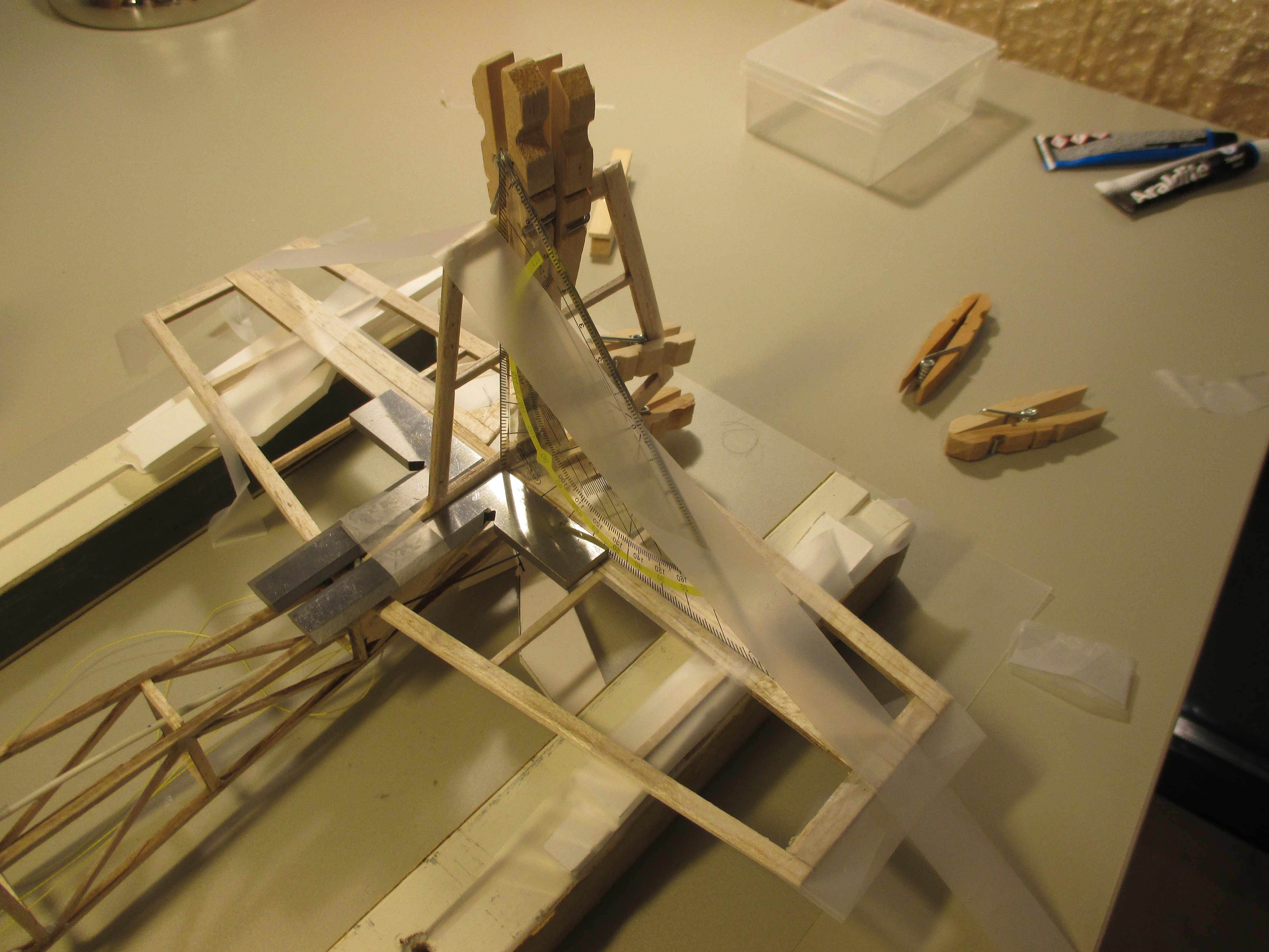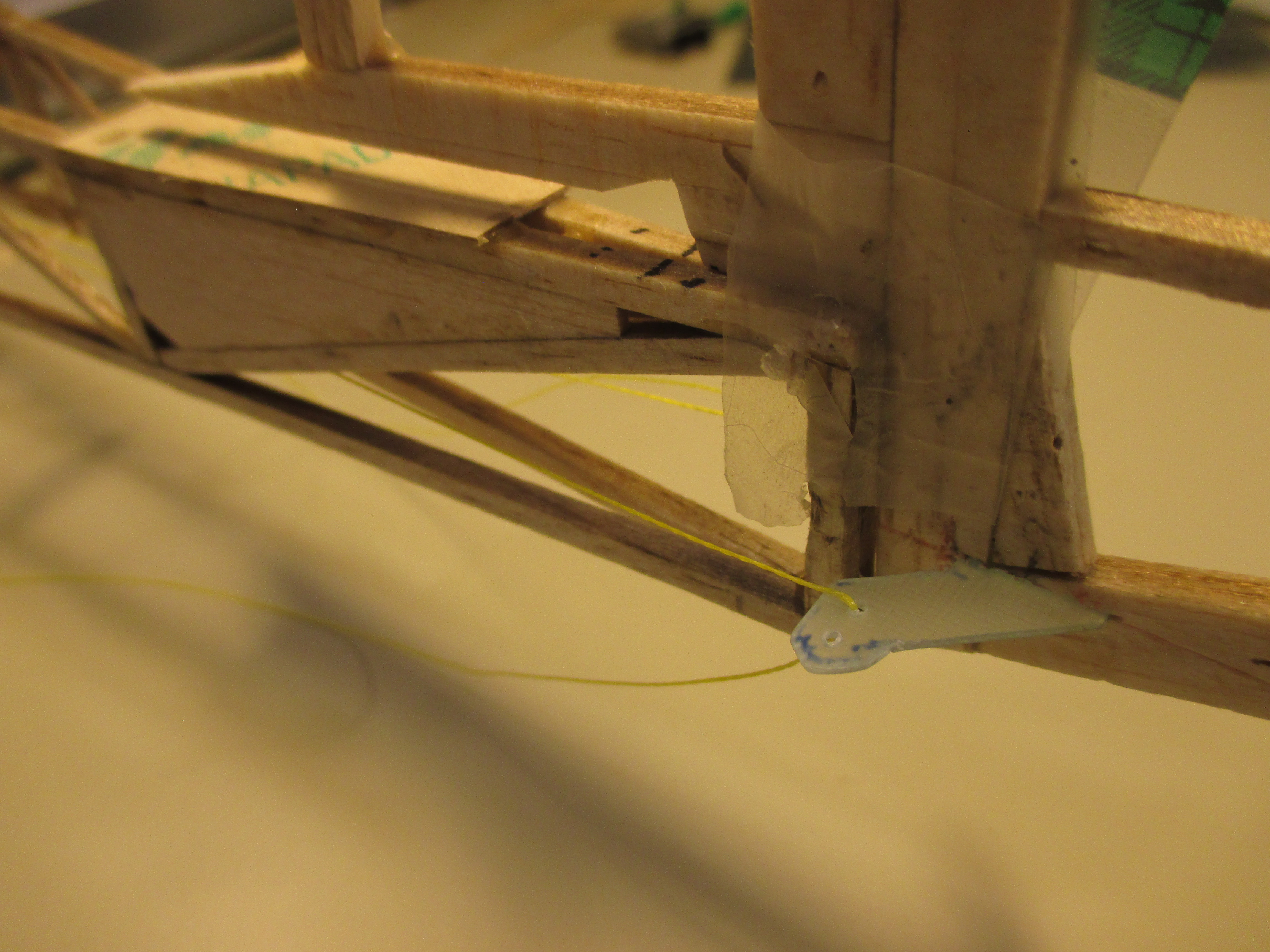 Llevo el conjunto a su sitio, y deslizo poco a poco el conjunto desde el cono para asegurar que queda simétricamente instalado. Aún puedo ajustar un poco las longitudes desde los espaciadores, atornillando o desatornillando. Cuando acabe las pruebas pondré fijatuercas (metacrilato) entre el bambú y el nylon para que no se mueva.