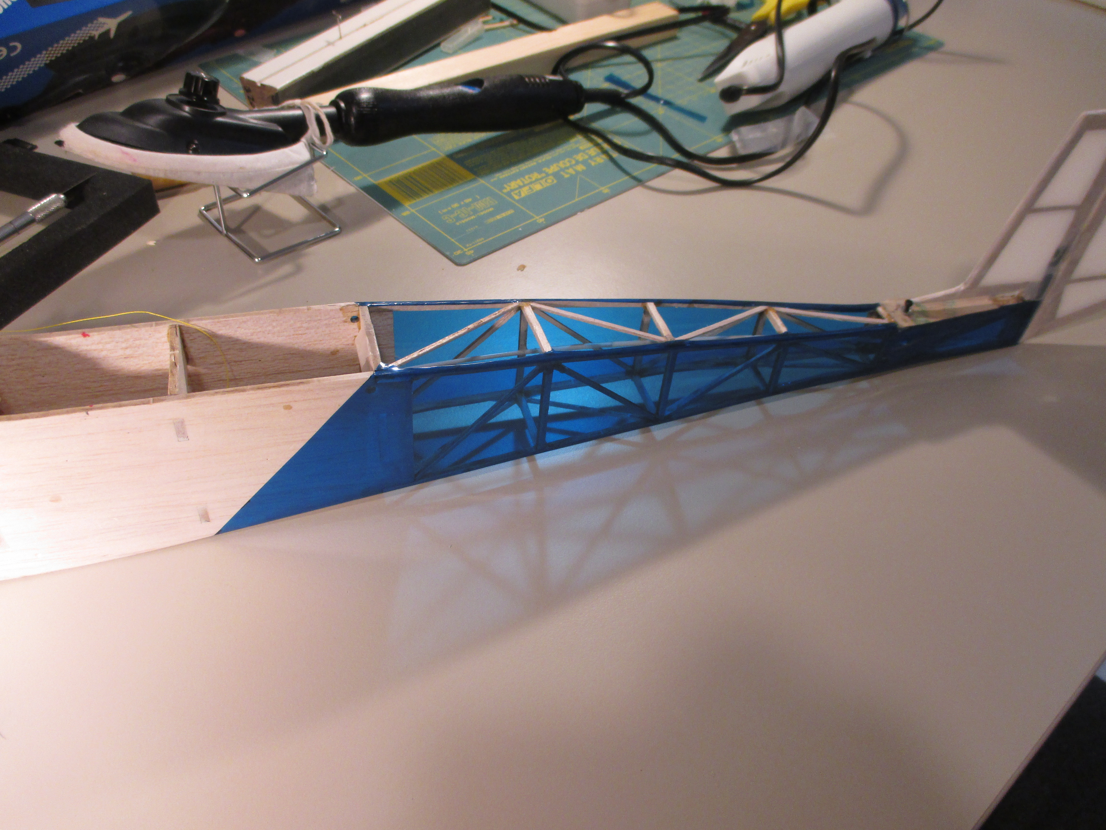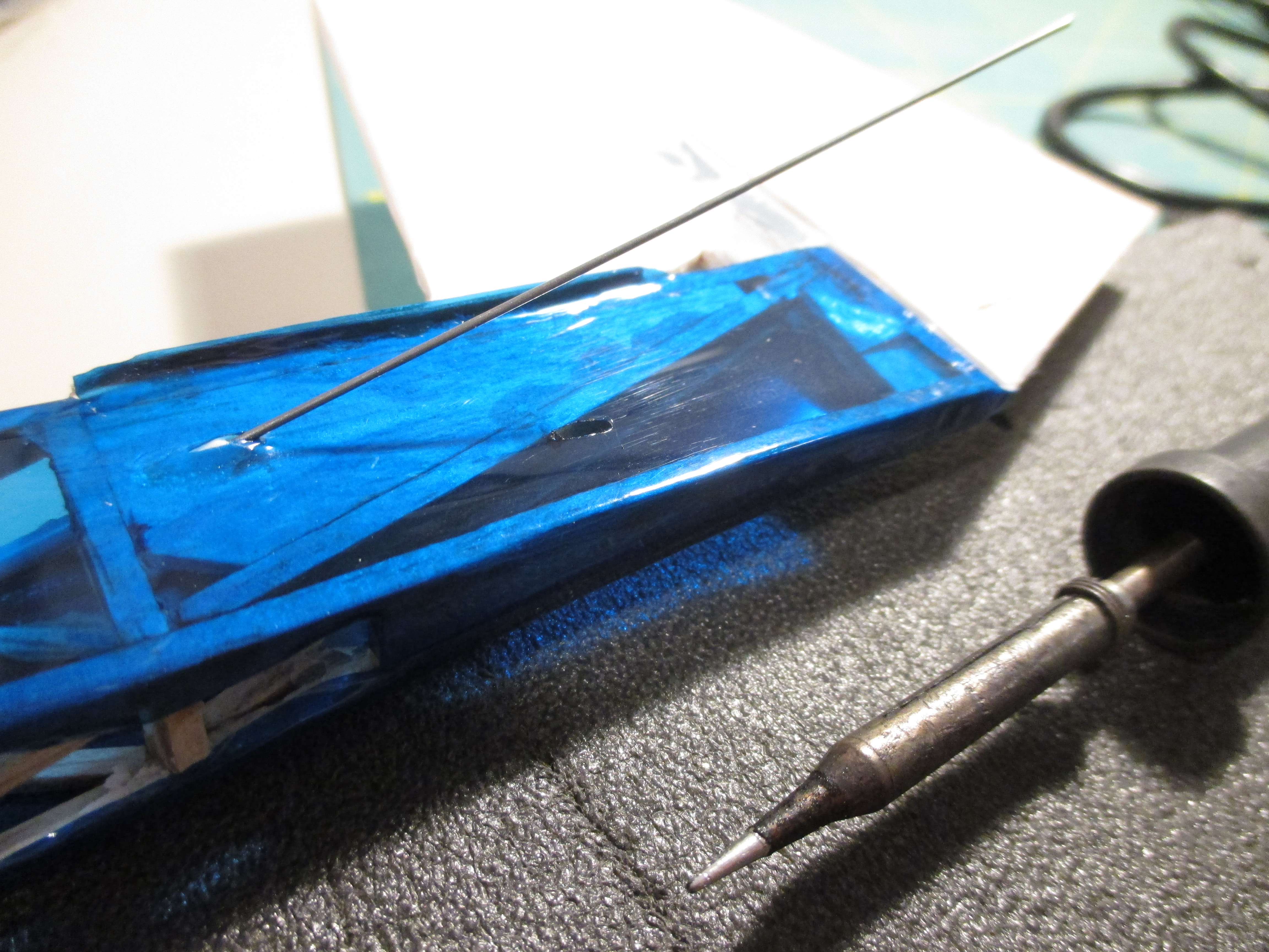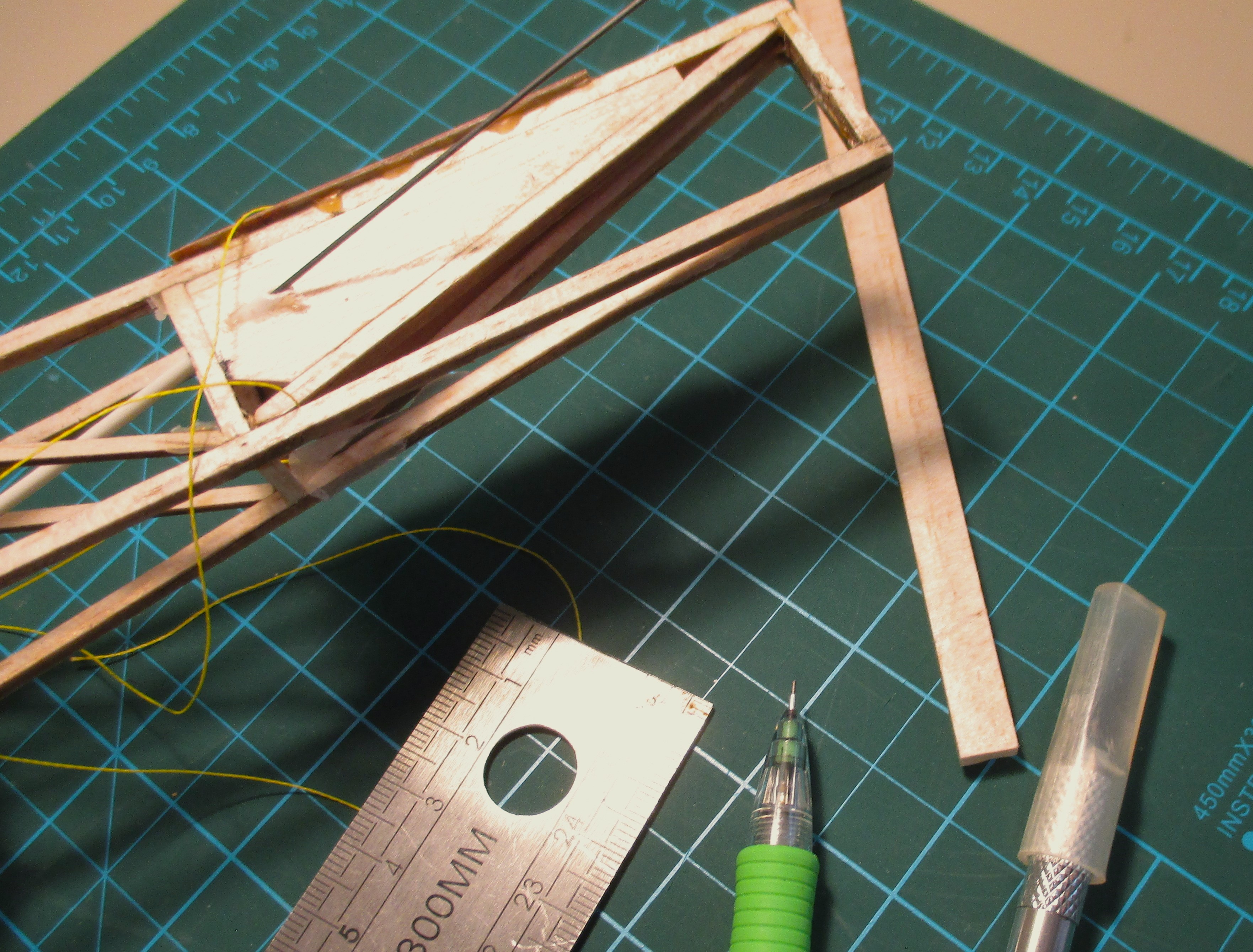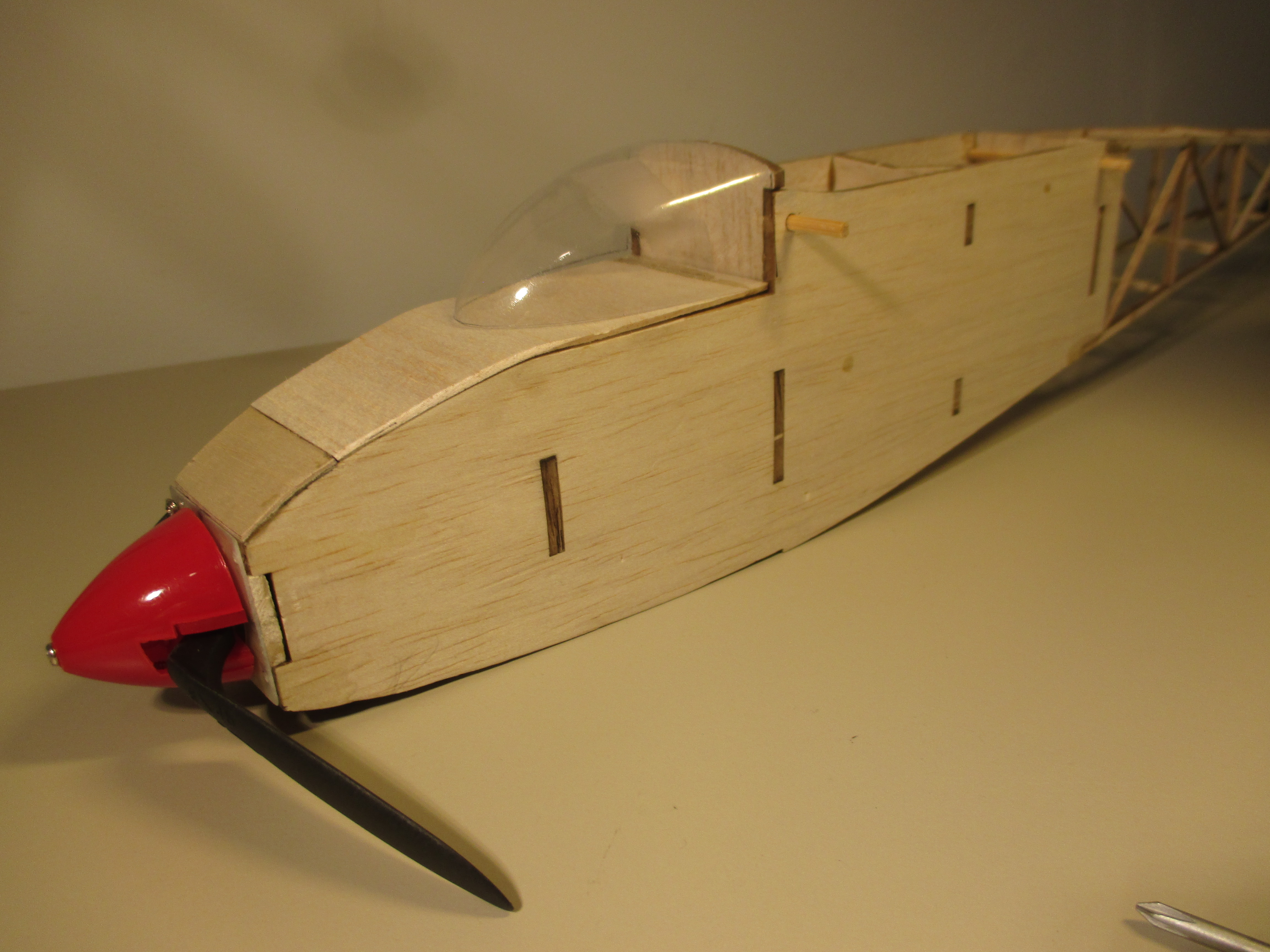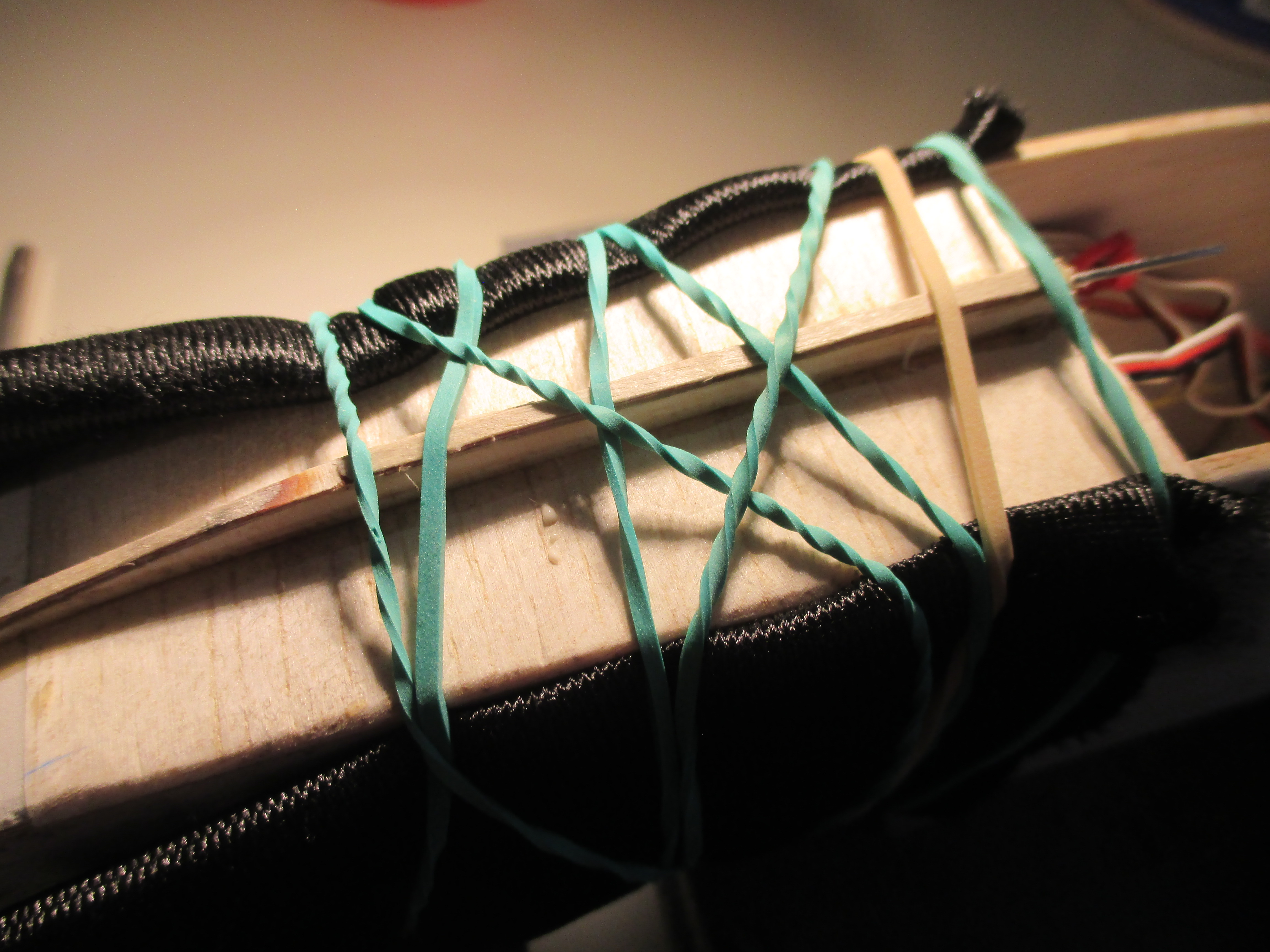 Llevo el conjunto a su sitio, y deslizo poco a poco el conjunto desde el cono para asegurar que queda simétricamente instalado. Aún puedo ajustar un poco las longitudes desde los espaciadores, atornillando o desatornillando. Cuando acabe las pruebas pondré fijatuercas (metacrilato) entre el bambú y el nylon para que no se mueva.