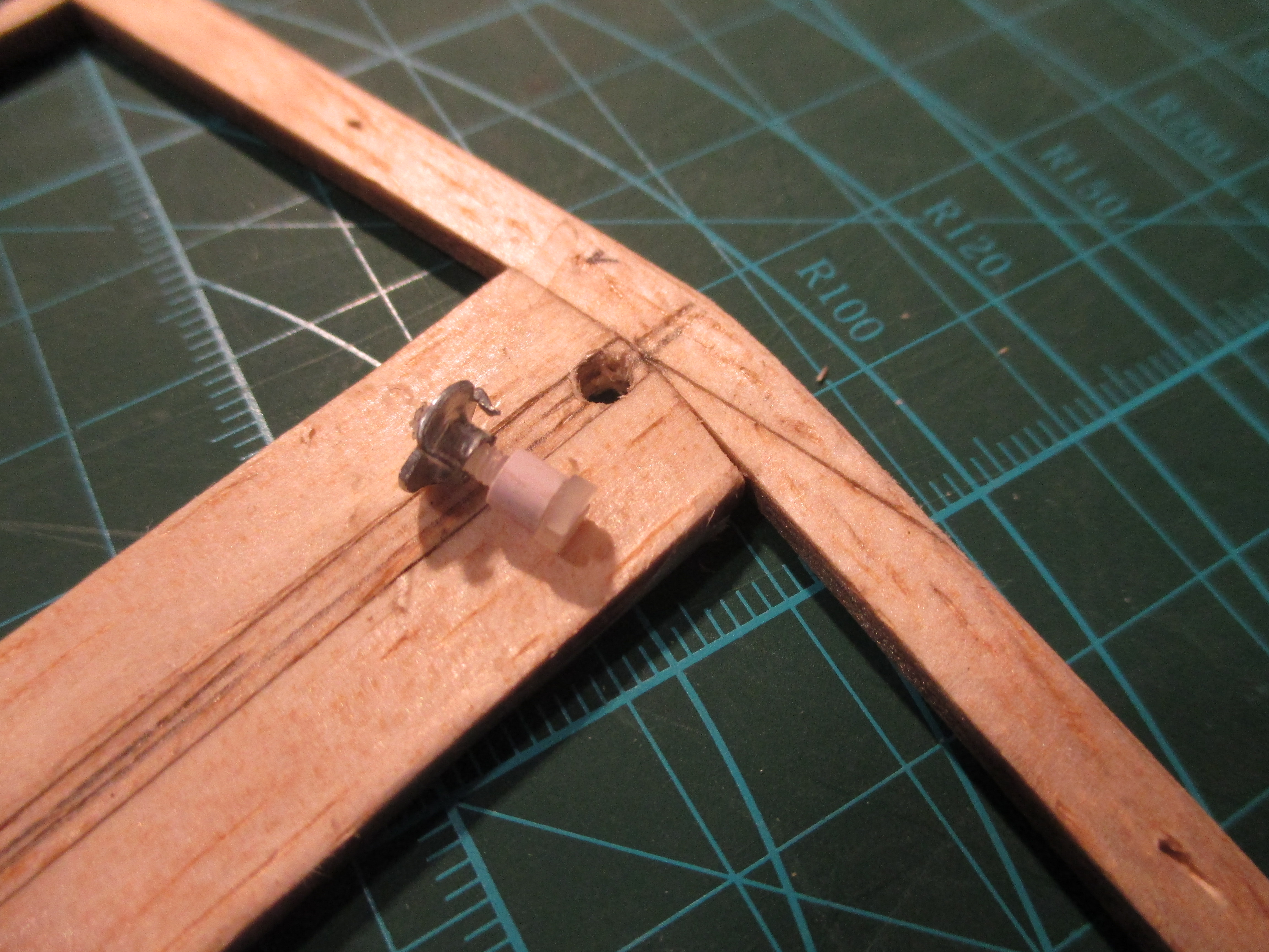 Me decido por meter espaciadores de nylon M3, ya que los palos de bambú son de diámetro 3mm y encajan. Los meto a presión un poco, y luego los voy enroscando para que avancen hasta que se queden en el mismo plano.
