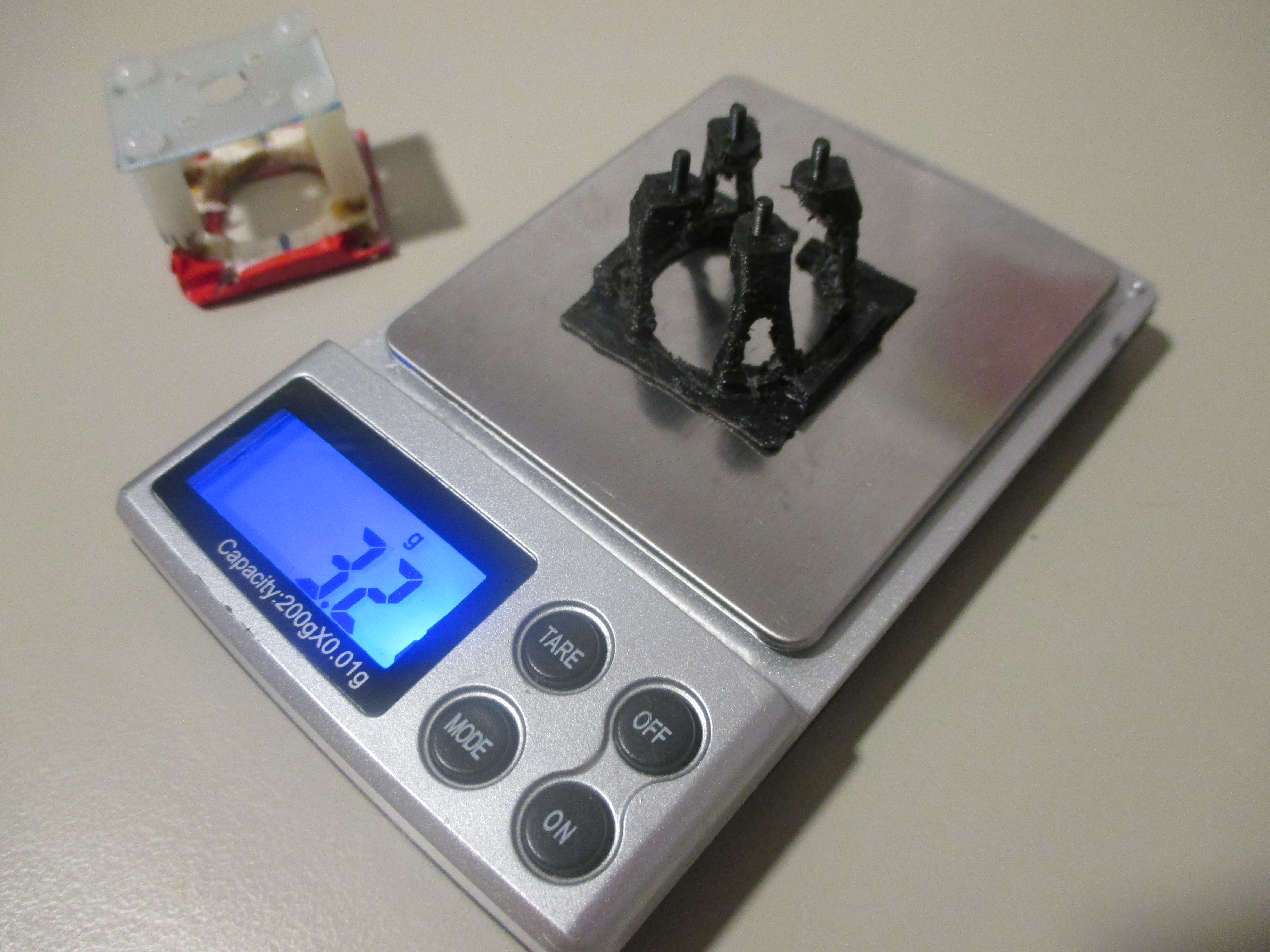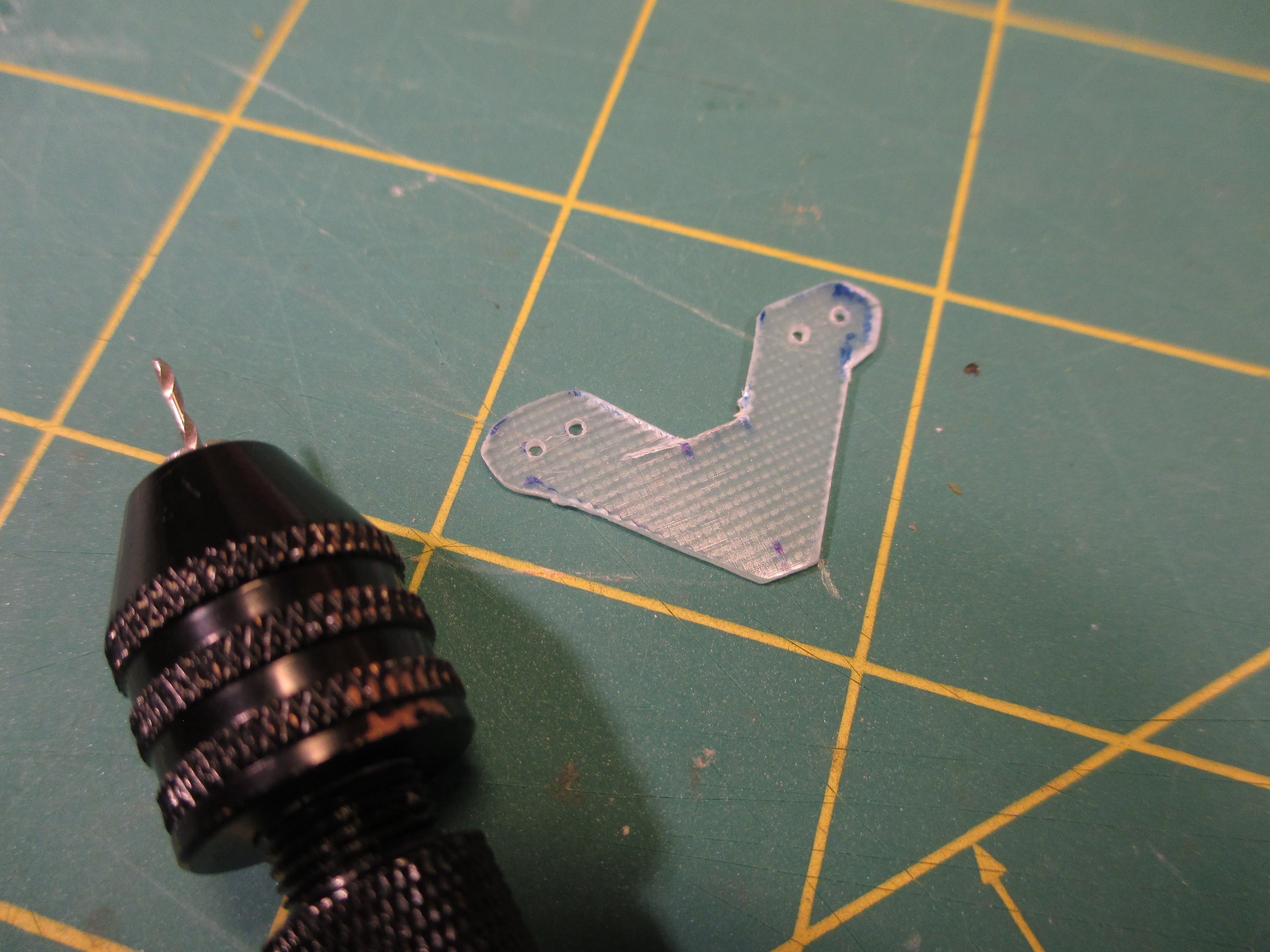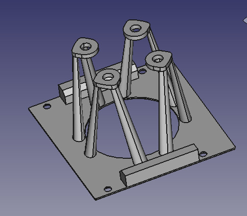 Con eso marco la posición de los agujeros para instalar la base del motor. Usaré tornillos y tuercas M2, y agujeros de 3mm, para tener holgura y poder jugar con la posición para centrar el cono.
