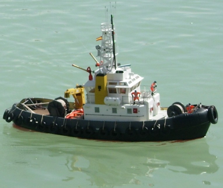 Bien, mirando el post este me he llevado una sopresa al ver este remolcador. Yo tambien lo compre hara unos dos años, fue de los primeros barcos rc que tuve. Como no me convencia el aspecto que traia "de fabrica" decidi reformarlo un poco. Empeze quitando la torre que traia sustituyendola por una artesanal construida en abs, le quite la estructura blanca que sujetaba la torre, dejando el techo del puente completamente liso (antes tenia dos niveles). Con esto pretendia quitar peso de arriba, pues en los giros escoraba mucho y cualquier ola amenazaba con volcarlo, de hecho me ocurrio. Tambien lo lastre y el barco parecia otro, tenia mucha mas estabilidad y superaba olas increibles. Tambien lo pinte inspirado en los colores que llevan los remolcadores de Sertosa norte y bueno como una imagen vale mas que mil palabras os adjunto unas fotillos para que veais el resultado.
