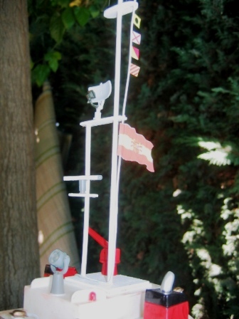 Le he cambiado la torre entera por una de fabricación artesanal de telecomunicaciones.Le he puesto banderas de señales y la nacional (mia).