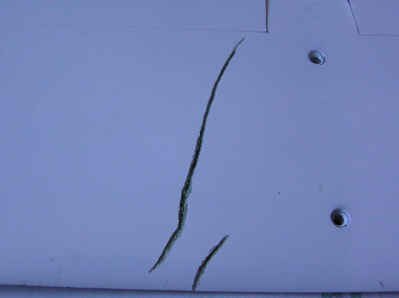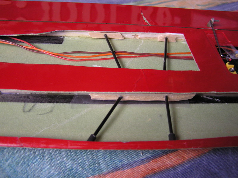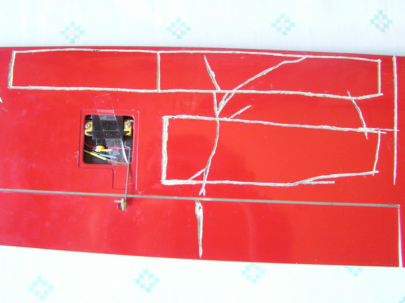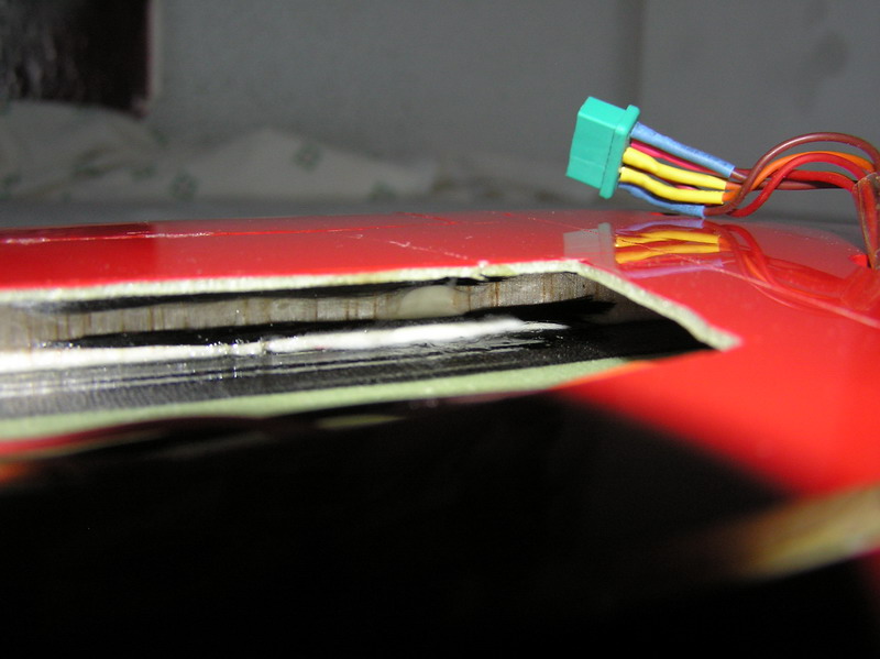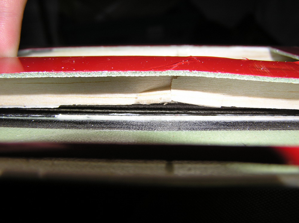 Como podéis ver en las fotos las tiras de carbono están intactas. Lo único que le ha pasado es que se ha aplastado un poco la balsa que hace de larguero y se ha despegado de la parte superior. Tanto en el larguero principal como en el que cierra el ala en los alerones.