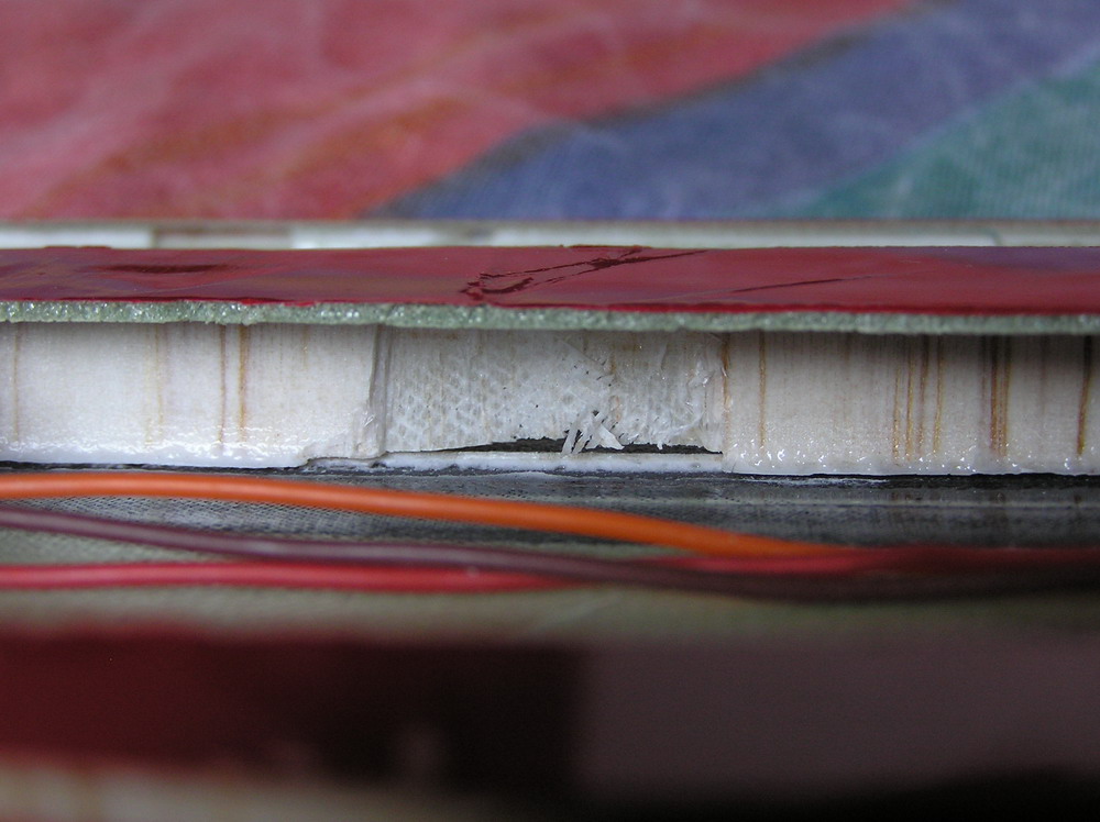 Y viendo el panorama digo yo.......¿no ganaría una barbaridad en resistencia si en vez de ser de balsa fuese de cualquier otro material un poco más duro? Ya me imagino que lo que aguanta los esfuerzos es el carbono, que la balsa no está más que para mantener las tiras de carbono en su sitio a modo de separador, pero como se puede ver la balsa se aplasta con nada. ¿No merecería la pena un poco más de peso por mucha más resistencia?